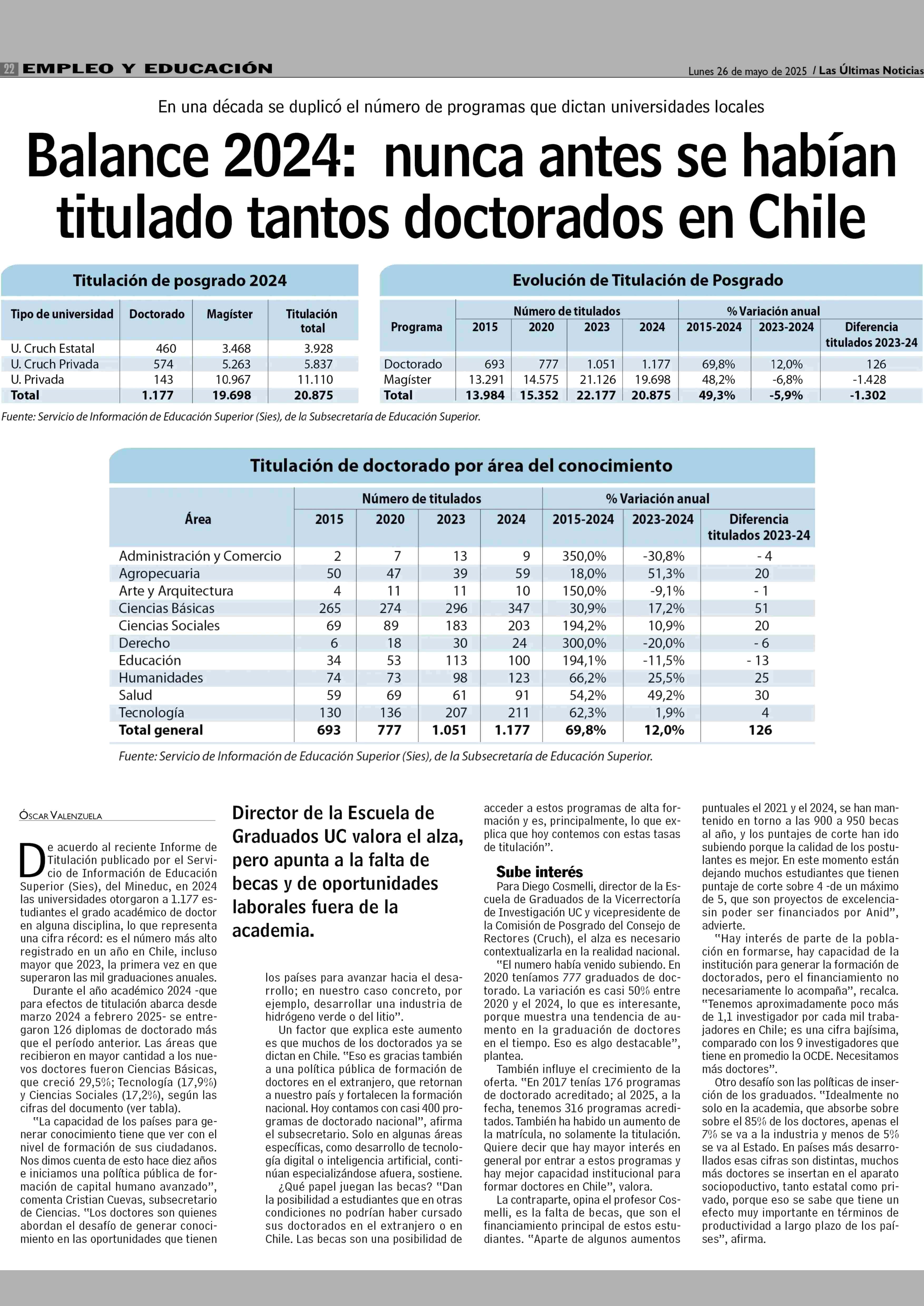 Título: Balance 2024: nunca antes se habian titulado tantos doctorados en Chile