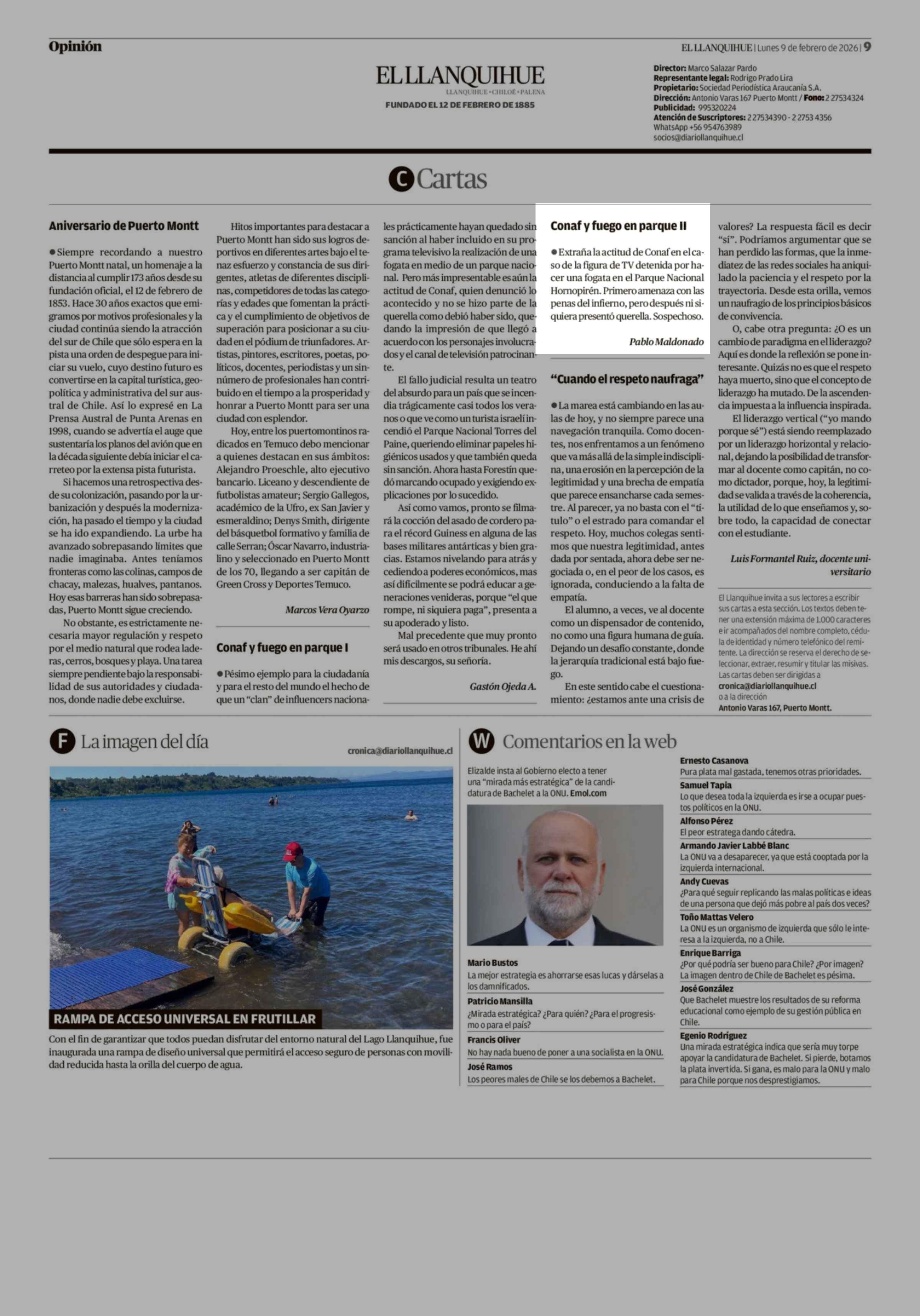 Cartas: Conaf y fuego en parque II 09-02-2026 El Llanquihue |