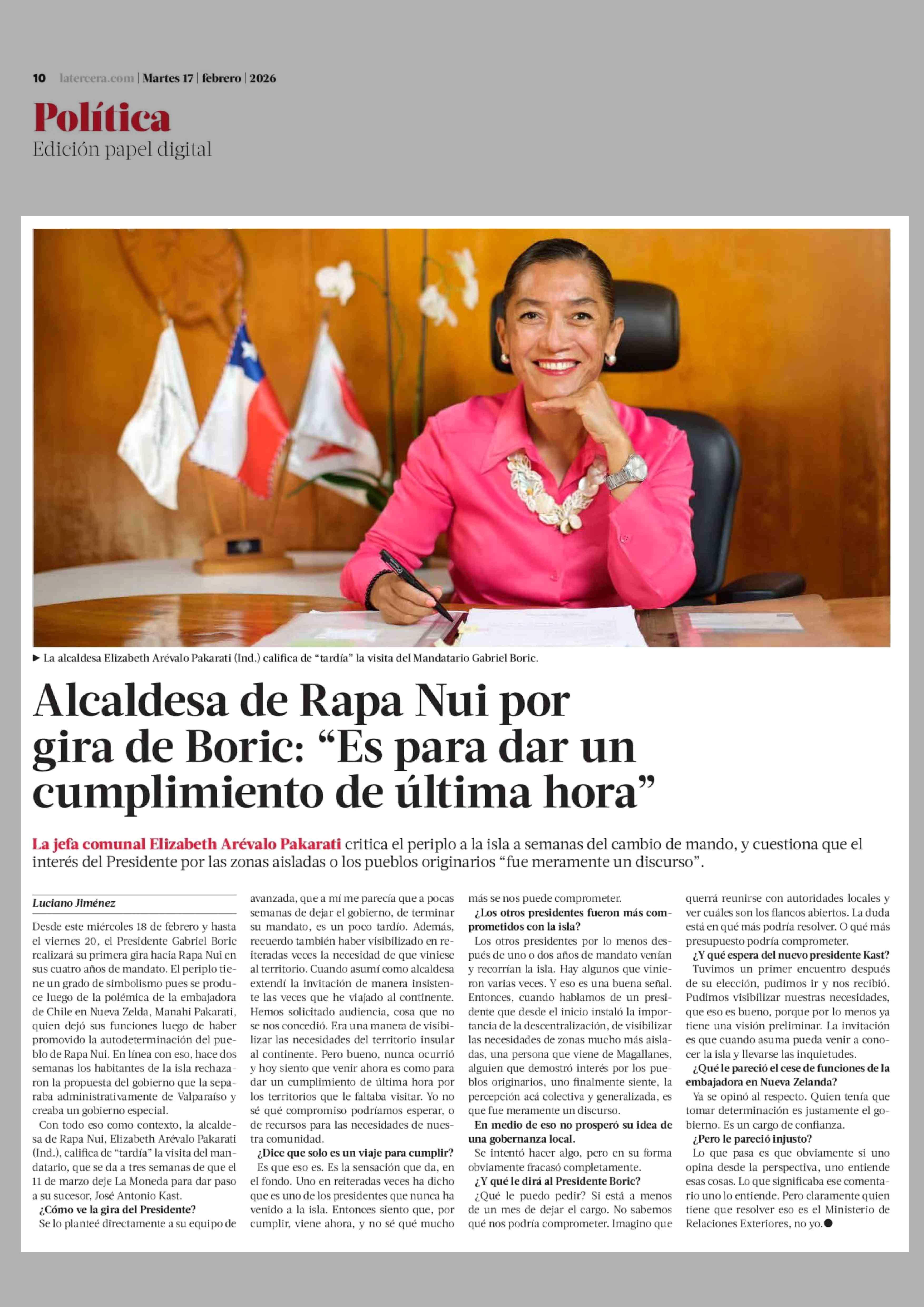 Título: Alcaldesa de Rapa Nui por gira de Boric: "Es para dar un cumplimiento de última hora"