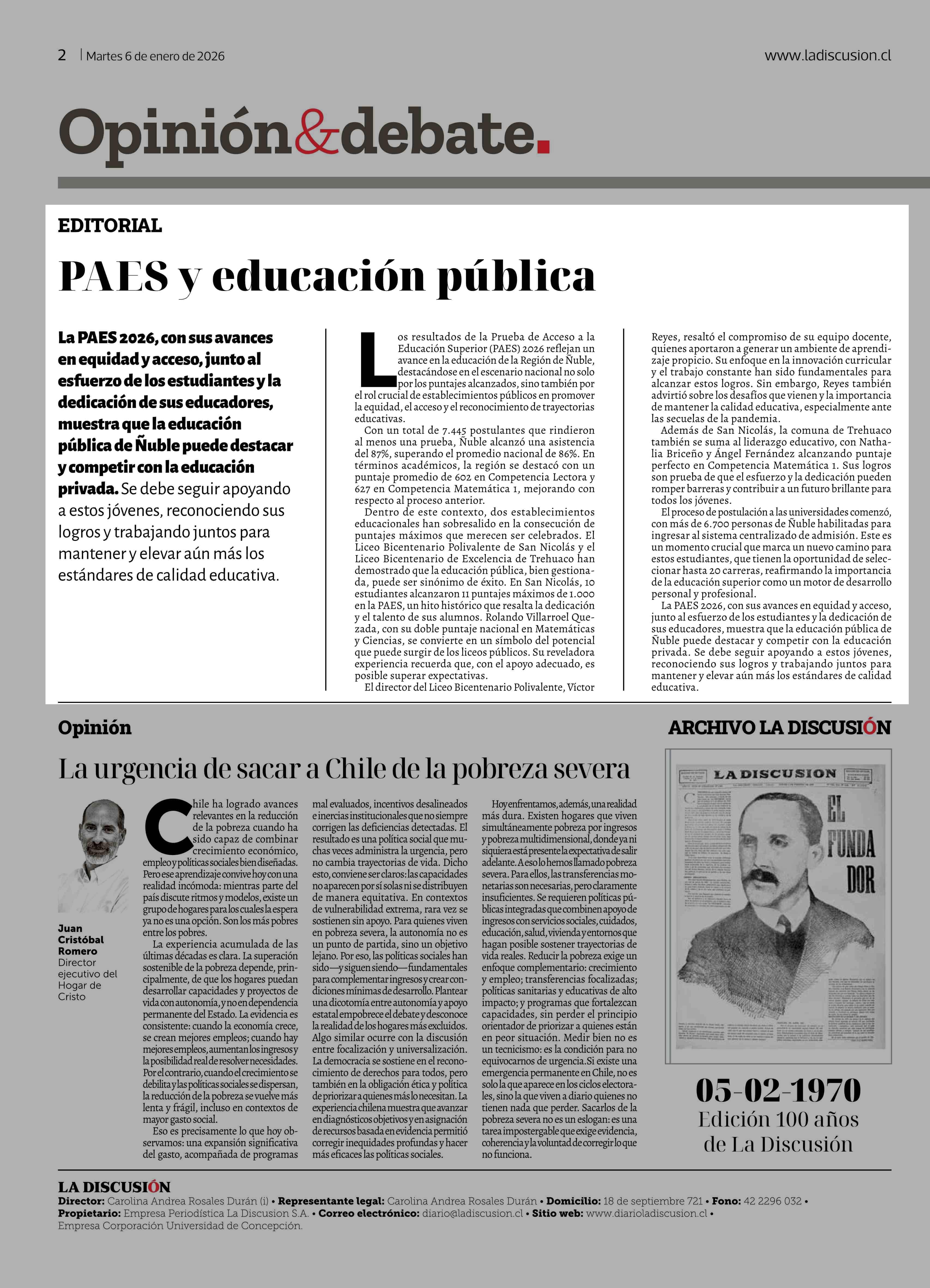 Editorial: PAES y educación pública 06-01-2026 La Discusión |