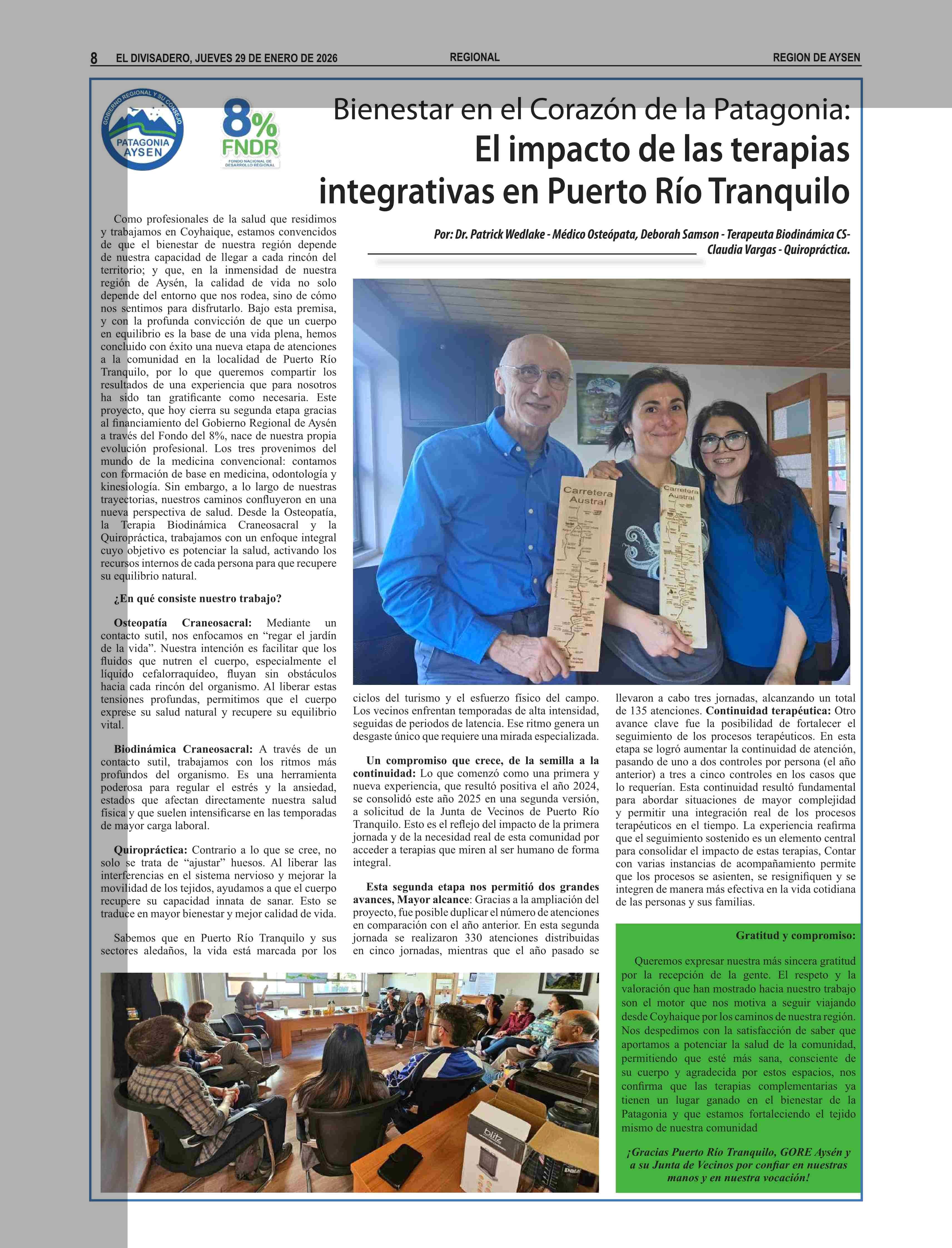 Bienestar en el Corazón de la Patagonia: El impacto de las terapias integrativas en Puerto Río Tranquilo 29-01-2026 El Divisadero |