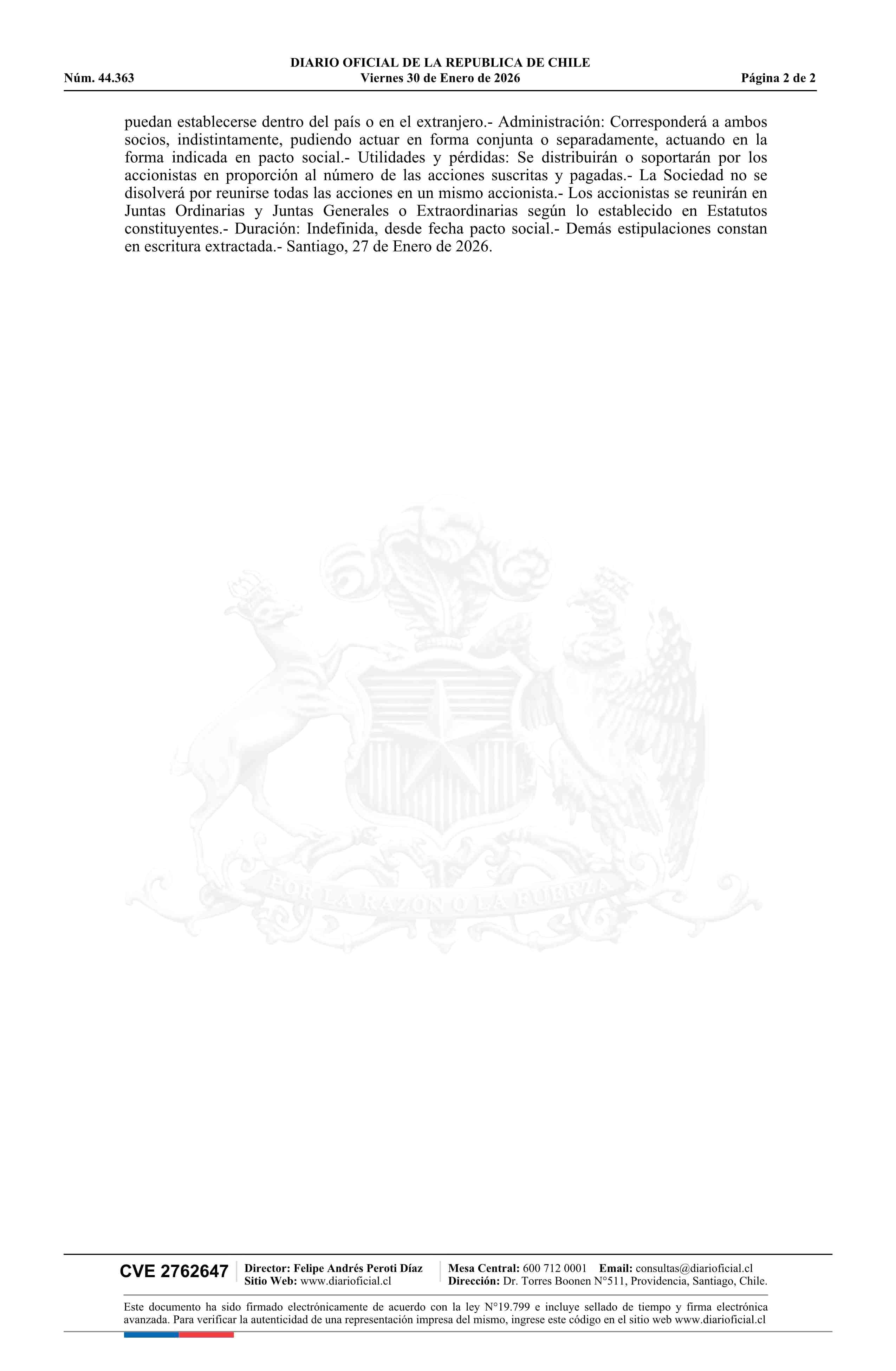 Fuente: Diario Oficial Edición Electrónica (Diario Oficial de Chile - 5 Empresas Y Cooper) Página(s): 47-48