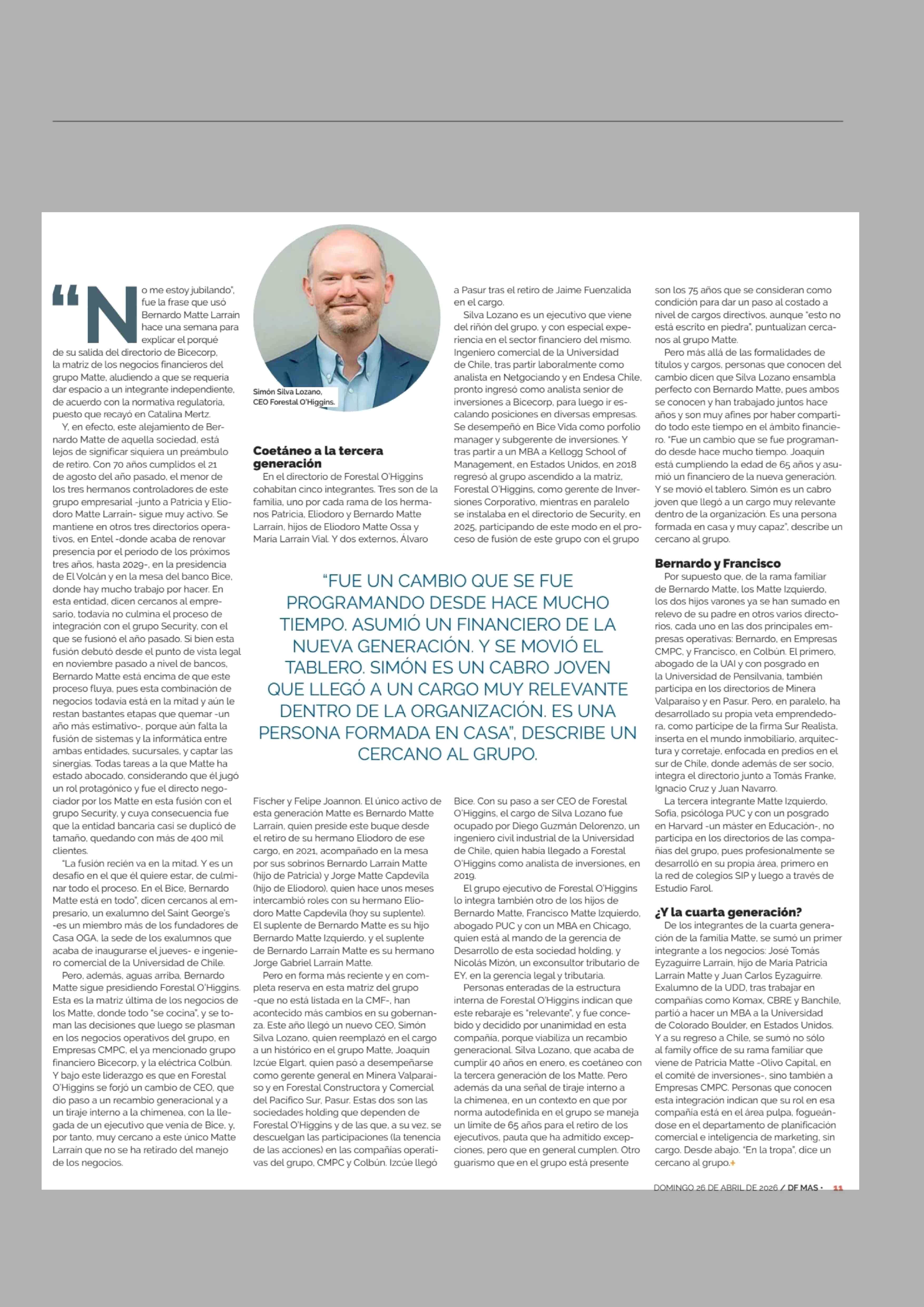 LOS RESERVADOS CAMBIOS EN LA MATRIZ DEL GRUPO MATTE 26-04-2026 Diario Financiero |
