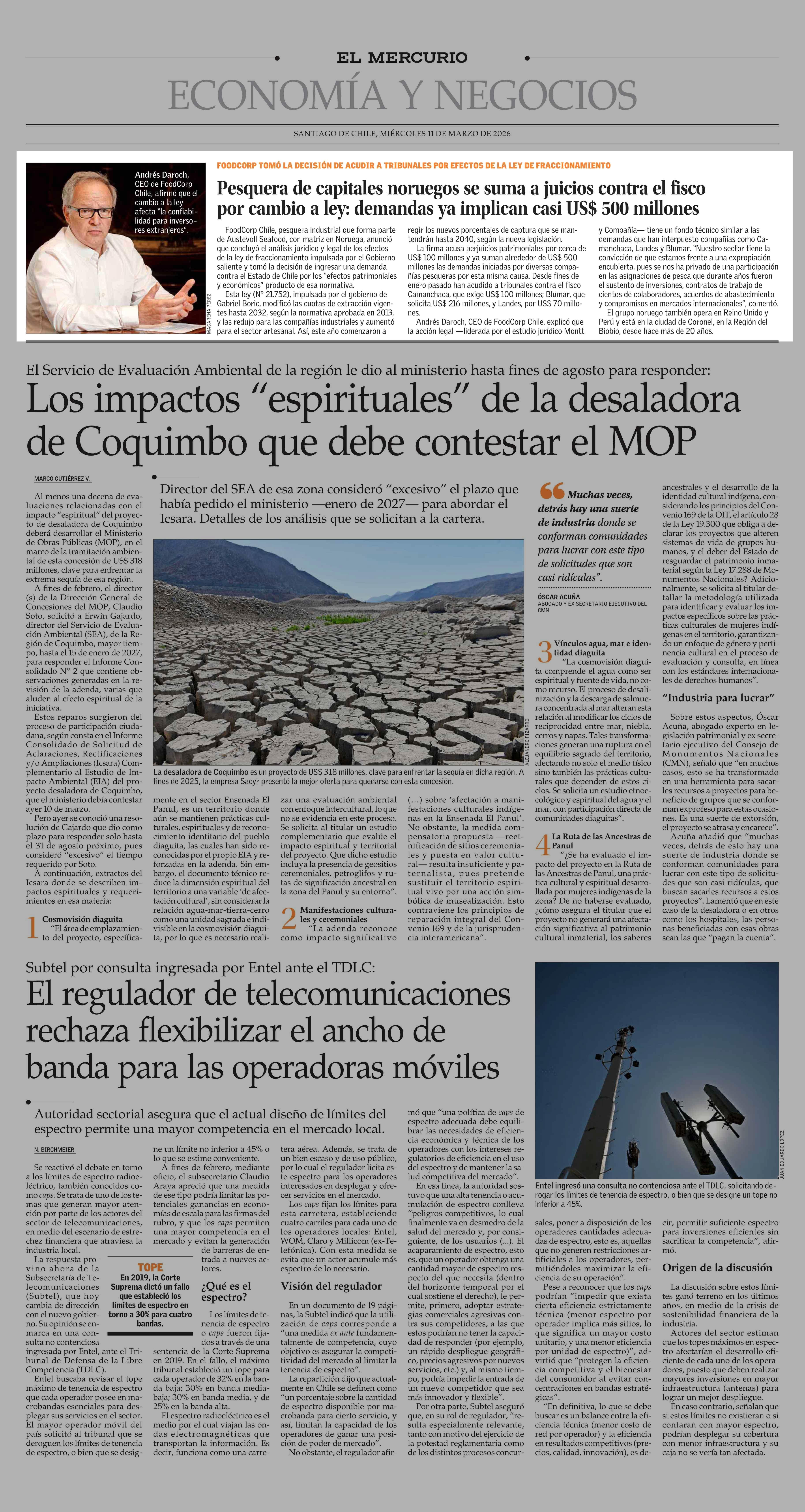 Pesquera de capitales noruegos se suma a juicios contra el fisco por cambio a ley: demandas ya implican casi US$ 500 millones 11-03-2026 El Mercurio |