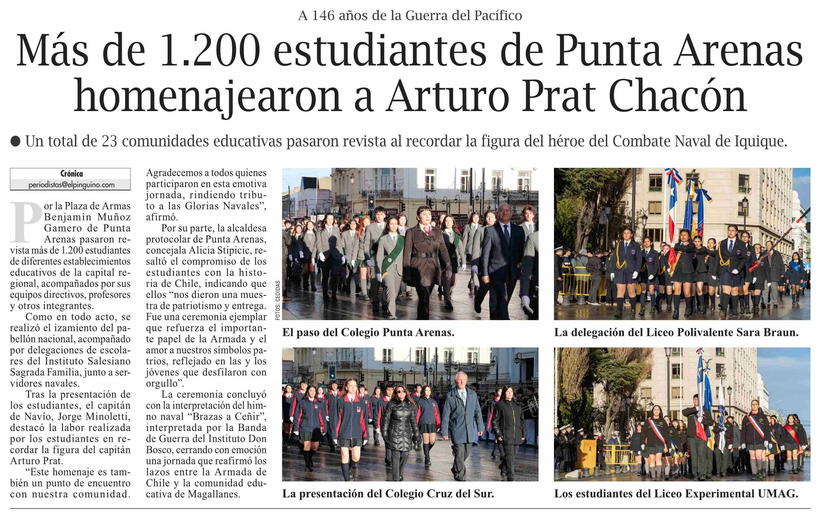 Más de 1.200 estudiantes de Punta Arenas homenajearon a Arturo Prat Chacón 24-05-2025 El Pingüino |