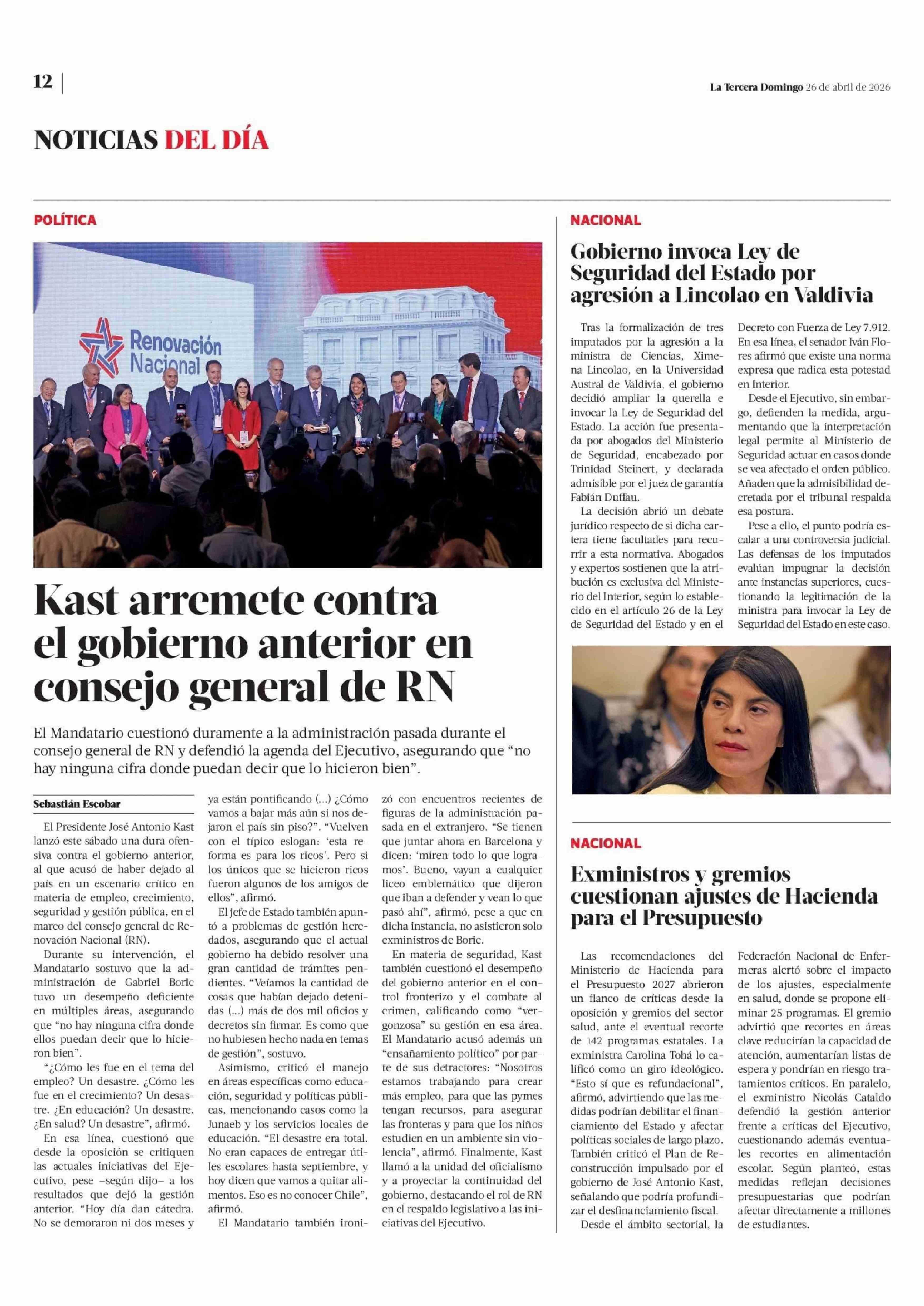 Fuente: La Tercera (La Tercera) Página(s): 12