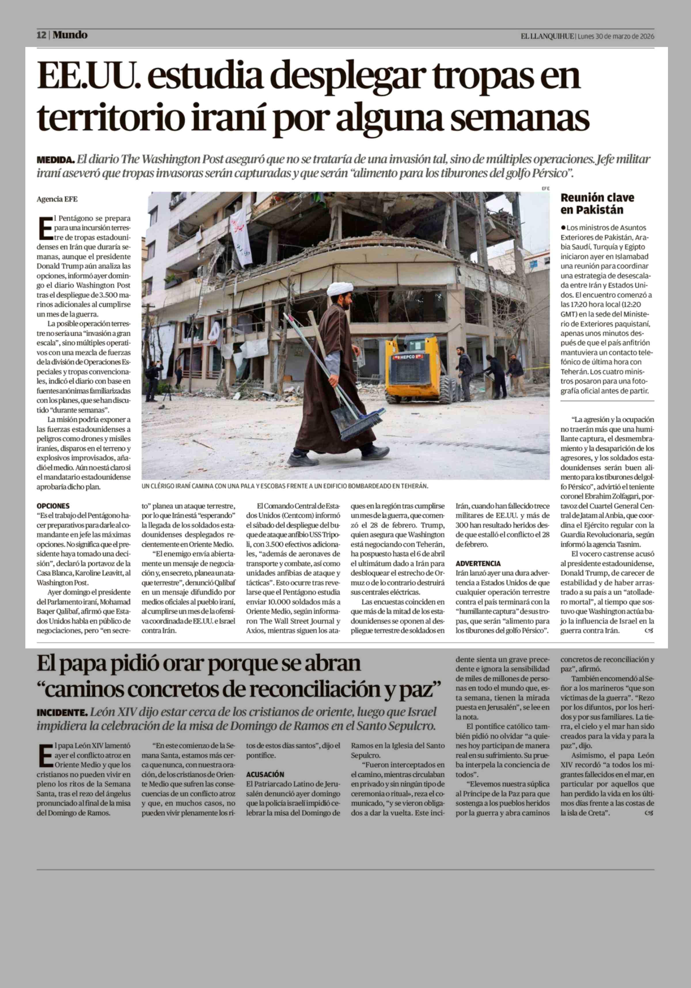 EE.UU. estudia desplegar tropas en territorio iraní por alguna semanas 30-03-2026 El Llanquihue |
