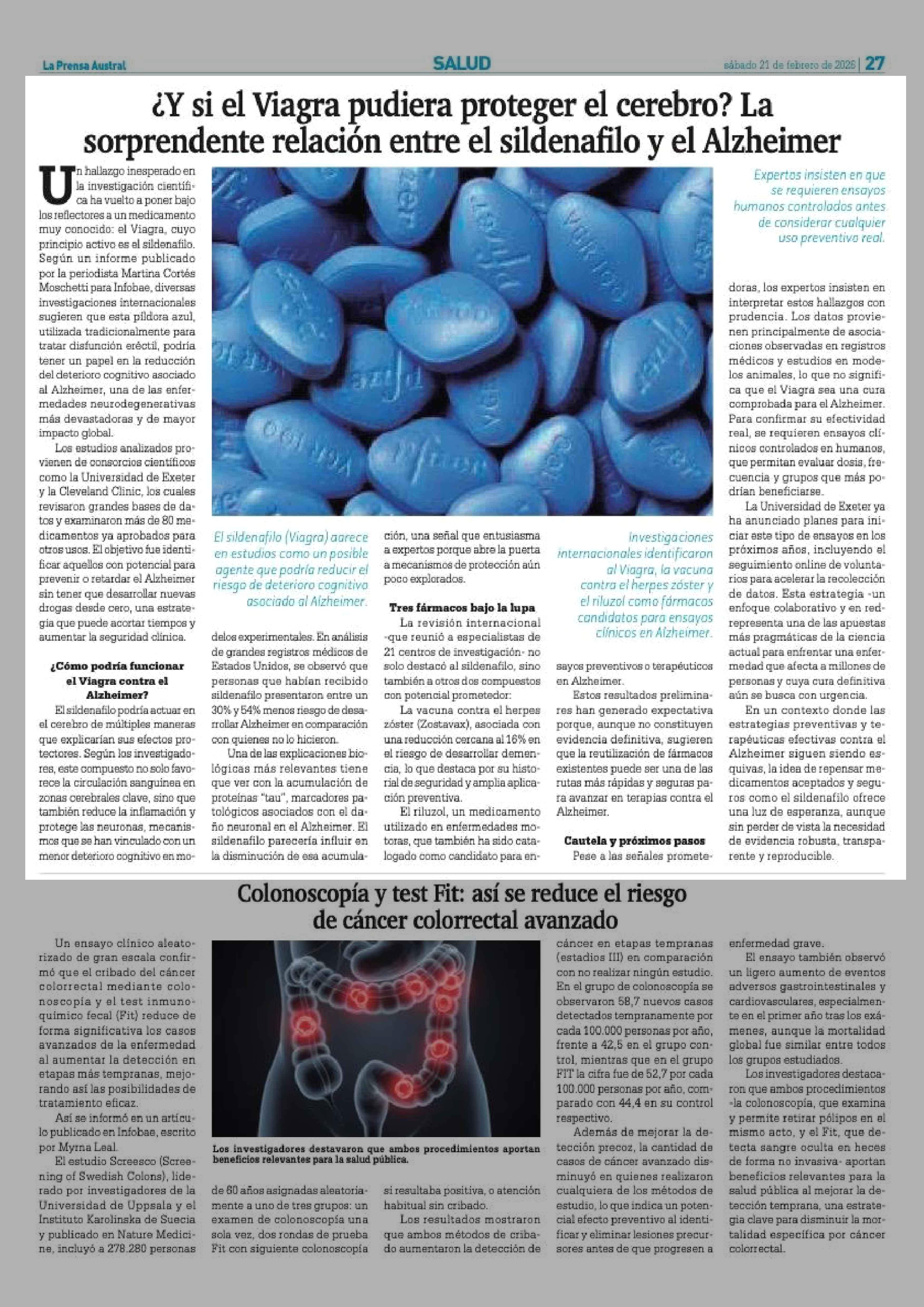¿Y si el Viagra pudiera proteger el cerebro? La sorprendente relación entre el sildenafilo y el Alzheimer 21-02-2026 La Prensa Austral |