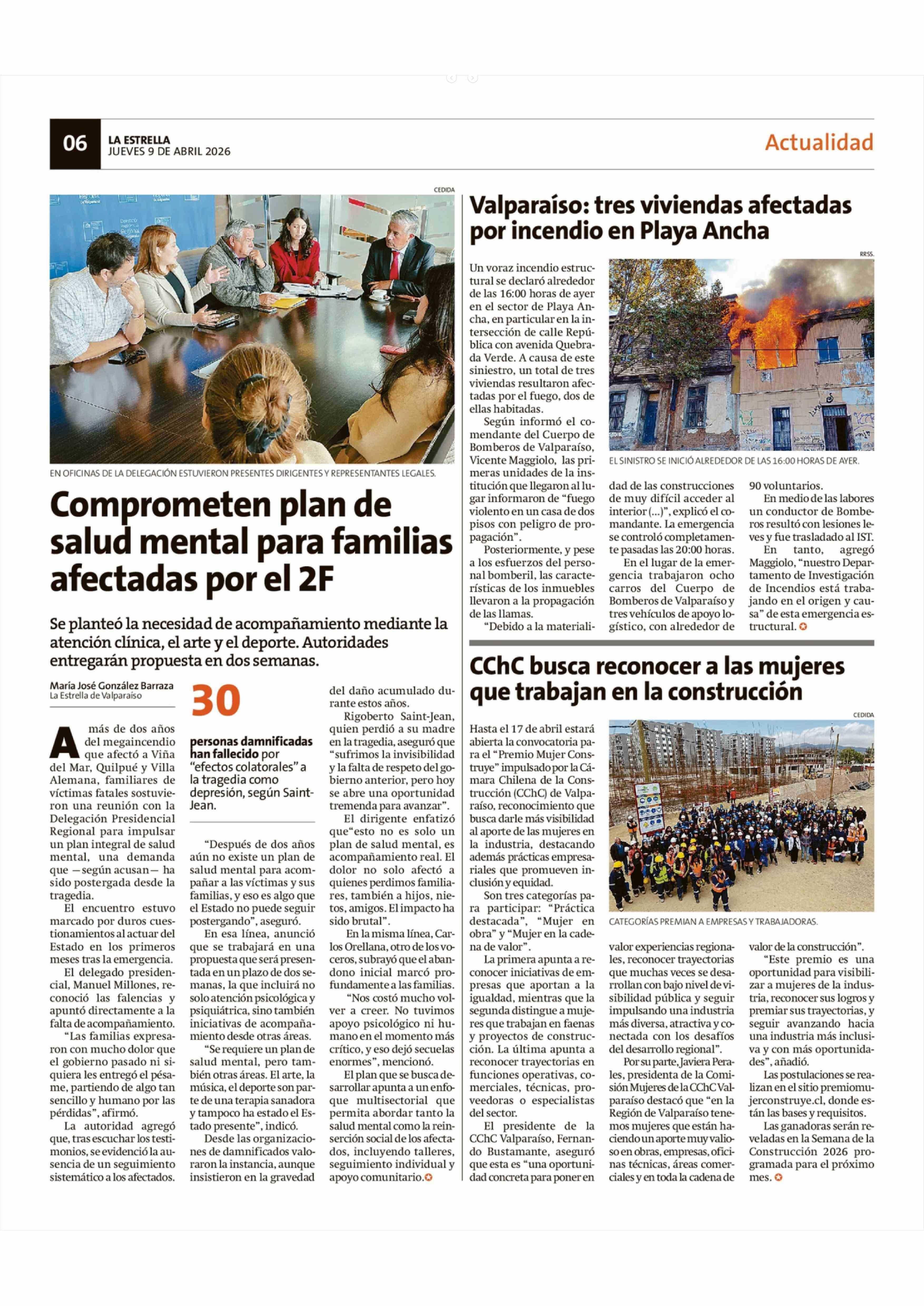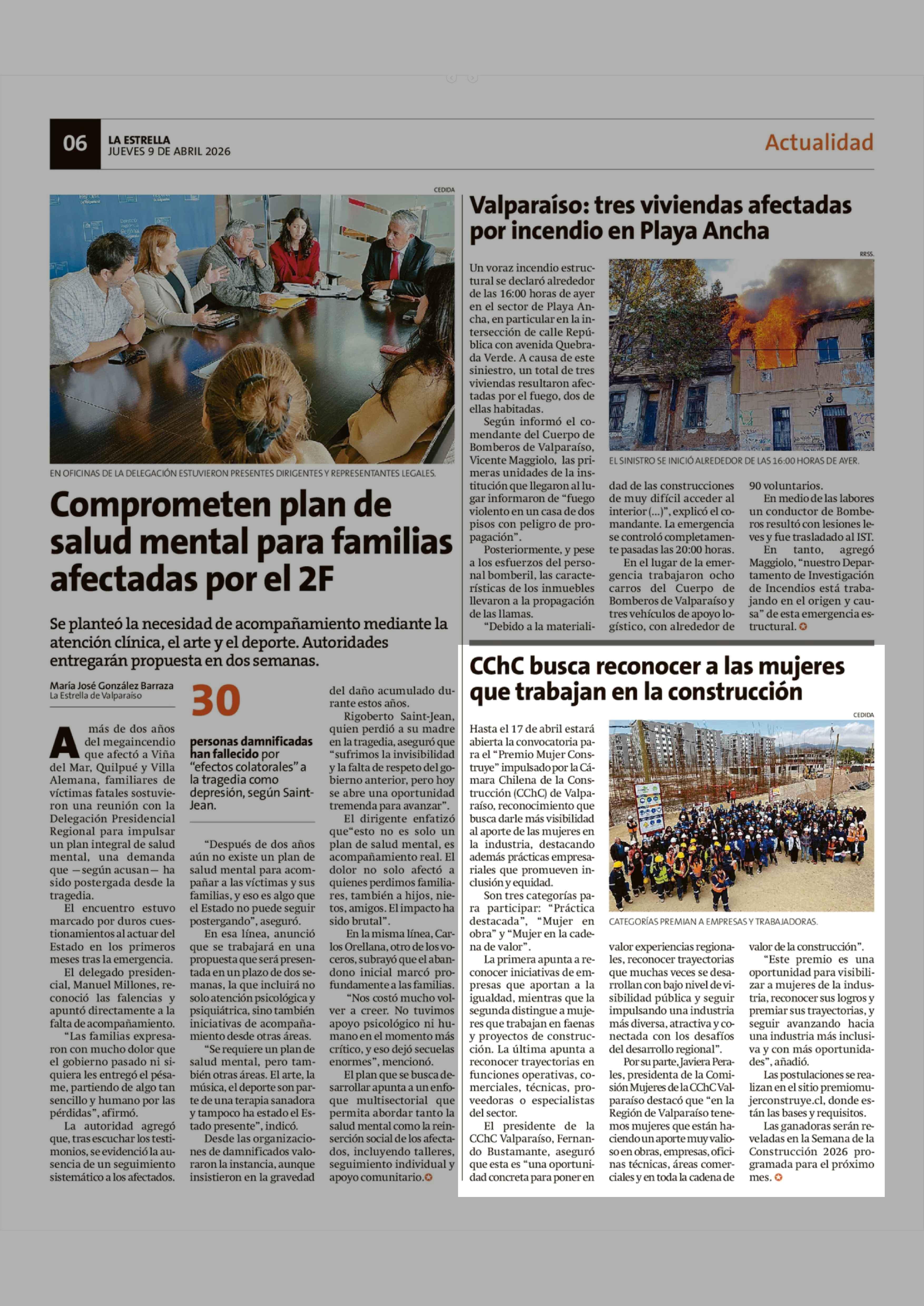 CChC busca reconocer a las mujeres que trabajan en la construcción 09-04-2026 La Estrella de Valparaíso |