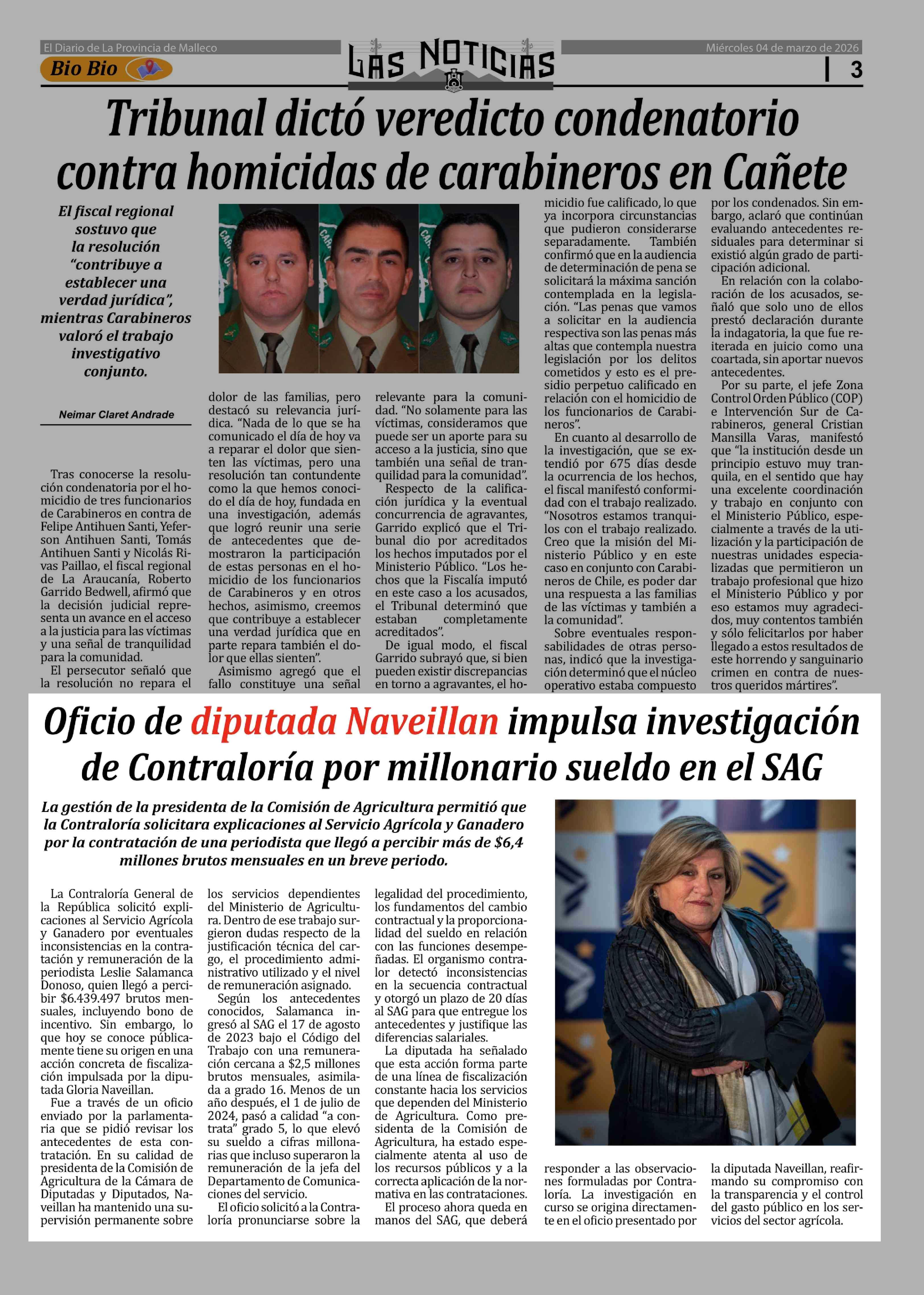 | Fecha: | 04-03-2026 | Sector: | Noticia general | Región: | Región de la Araucanía |