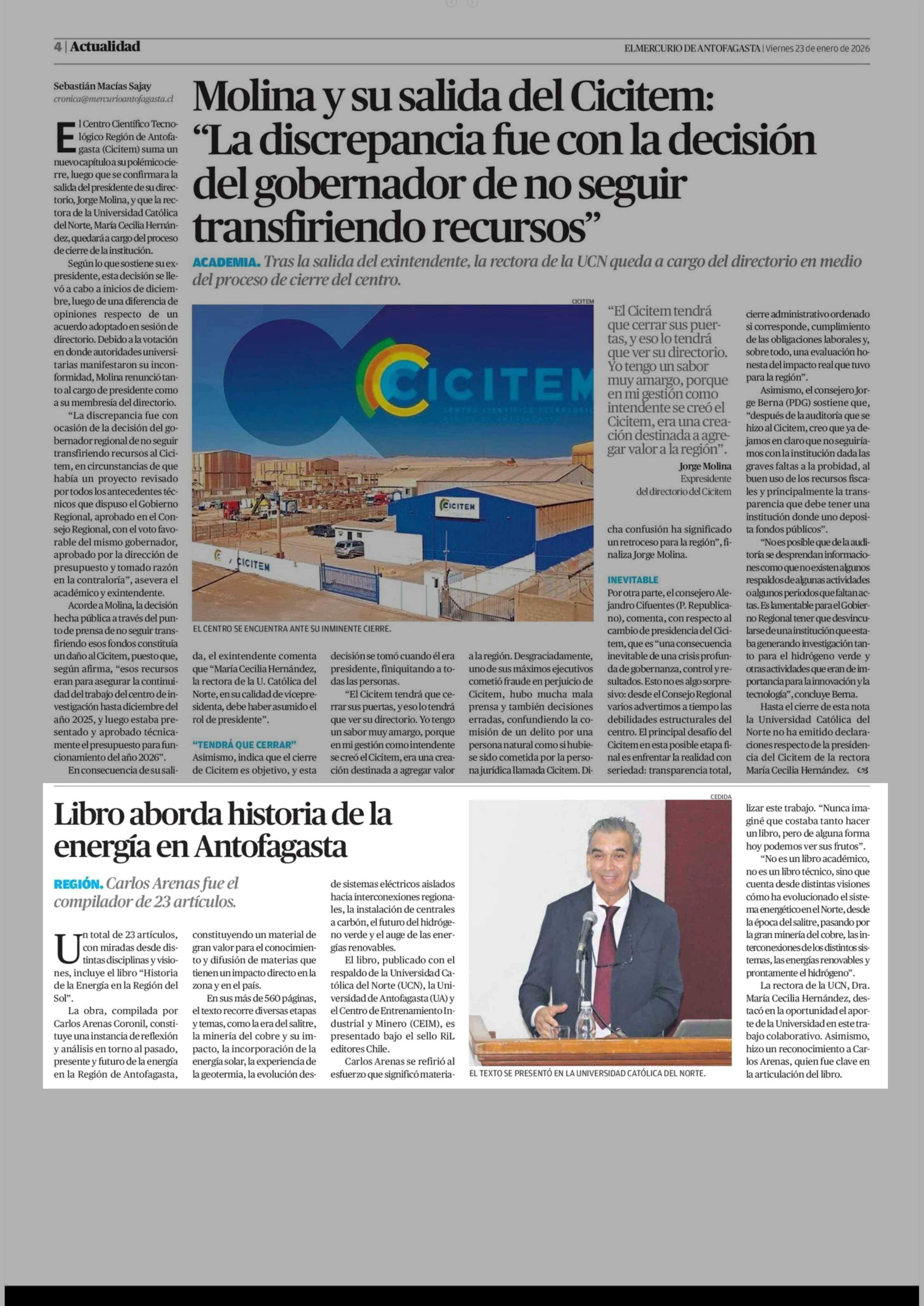 Libro aborda historia de la energía en Antofagasta 23-01-2026 El Mercurio de Antofagasta |