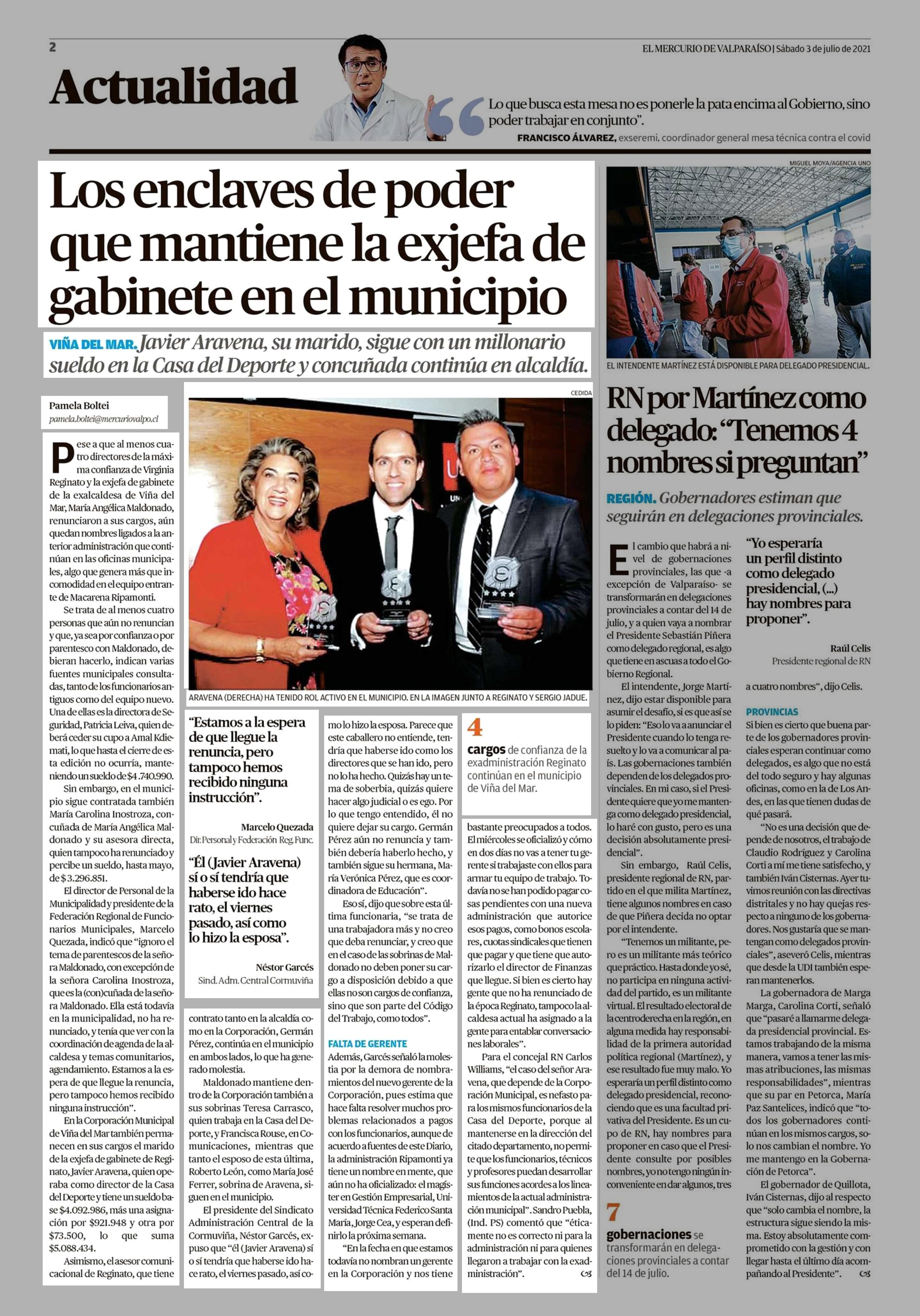 Los enclaves de poder que mantiene la exjefa de gabinete en el municipio 03-07-2021 El Mercurio de Valparaíso |