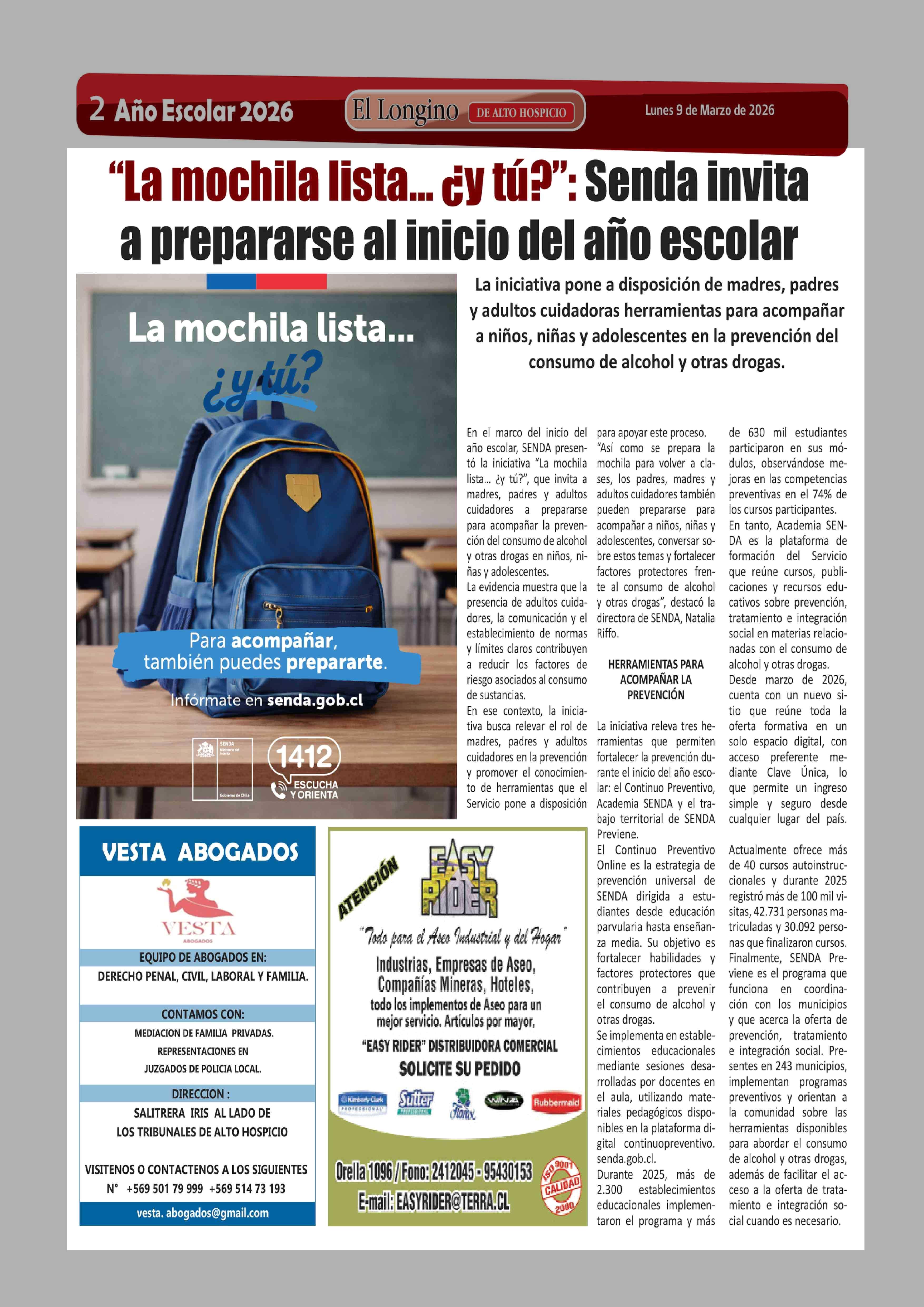 "La mochila lista ... cy tu?": Senda invita a prepararse al inicio del año escolar 09-03-2026 El Longino |