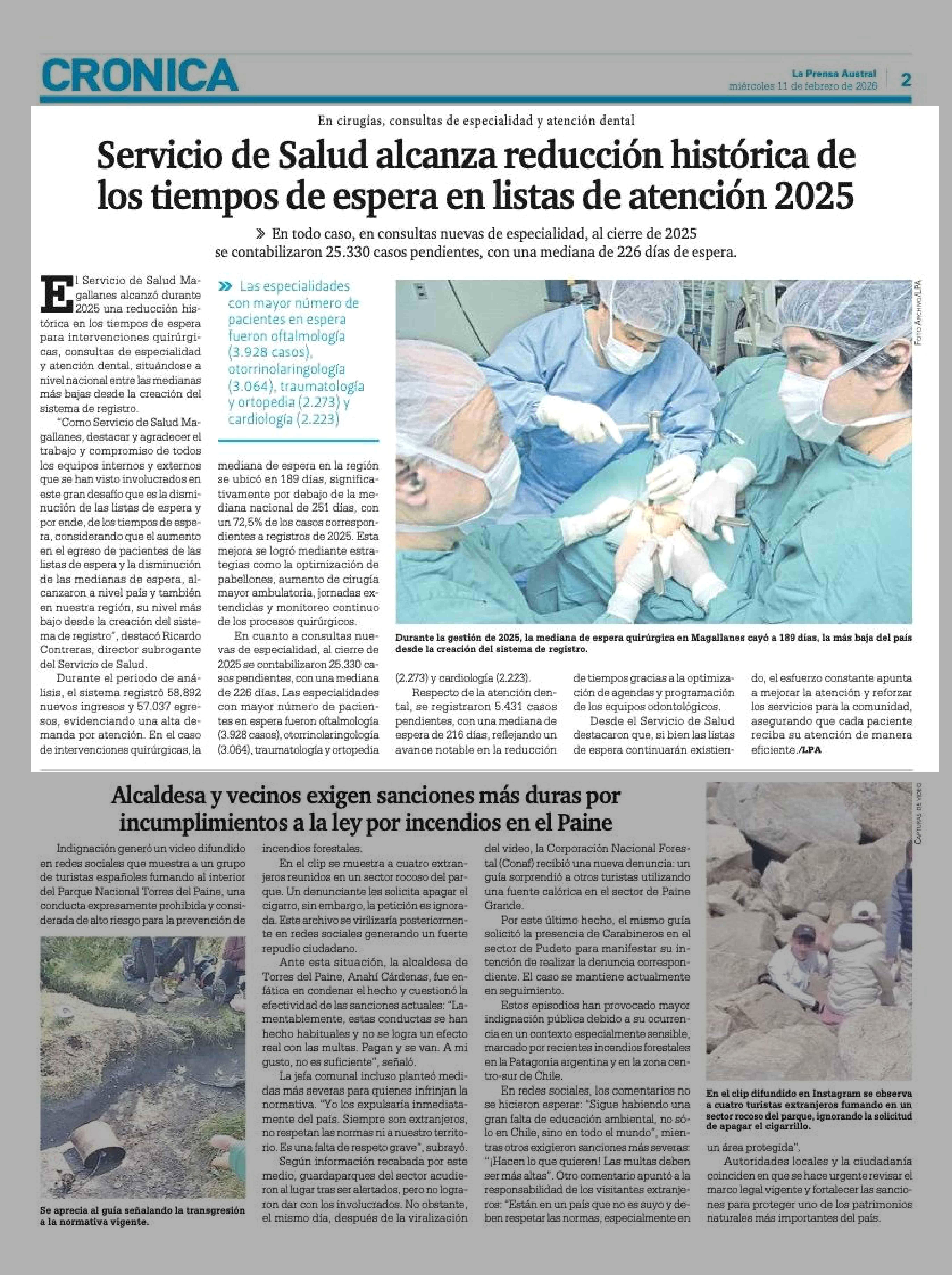 Servicio de Salud alcanza reducción histórica de los tiempos de espera en listas de atención 2025 11-02-2026 La Prensa Austral |