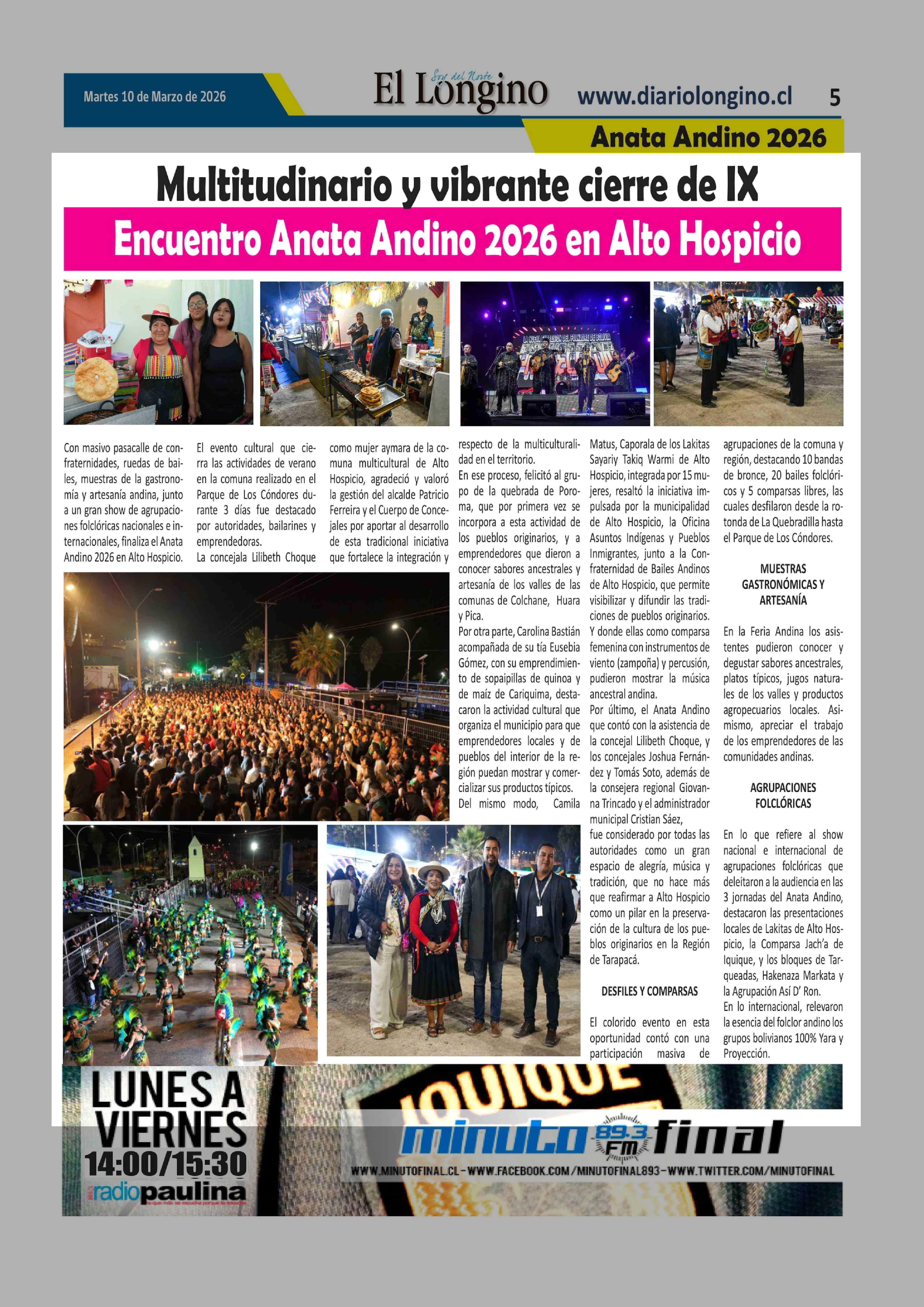 Multitudinario y vibrante cierre de IX Encuentro Anata Andino 2026 en Alto Hospicio 10-03-2026 El Longino |