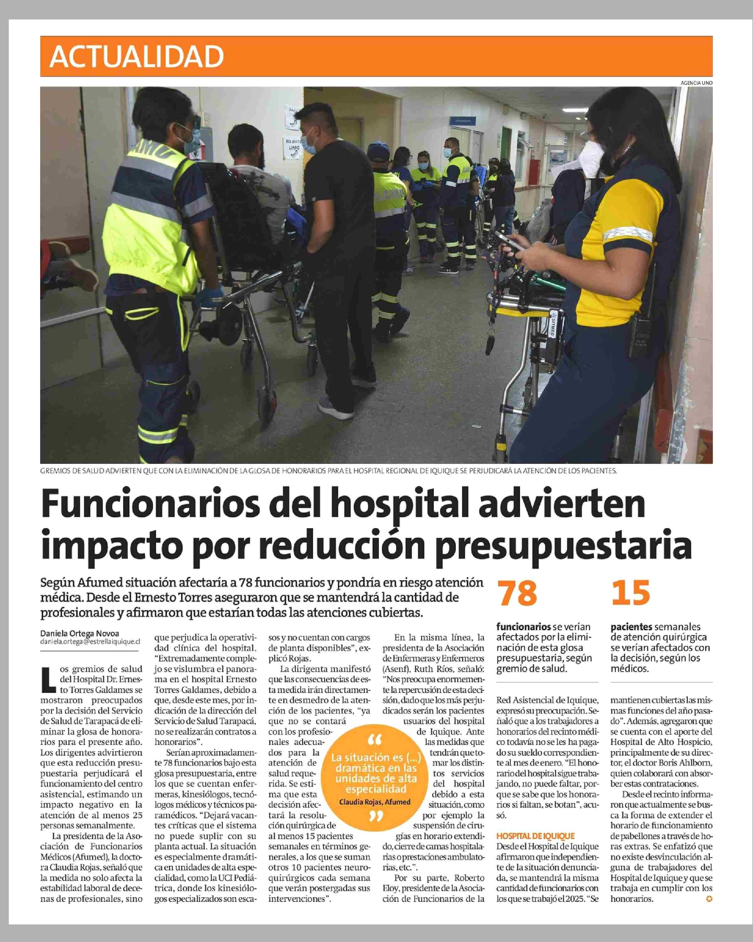 Título: Funcionarios del hospital advierten impacto por reducción presupuestaria