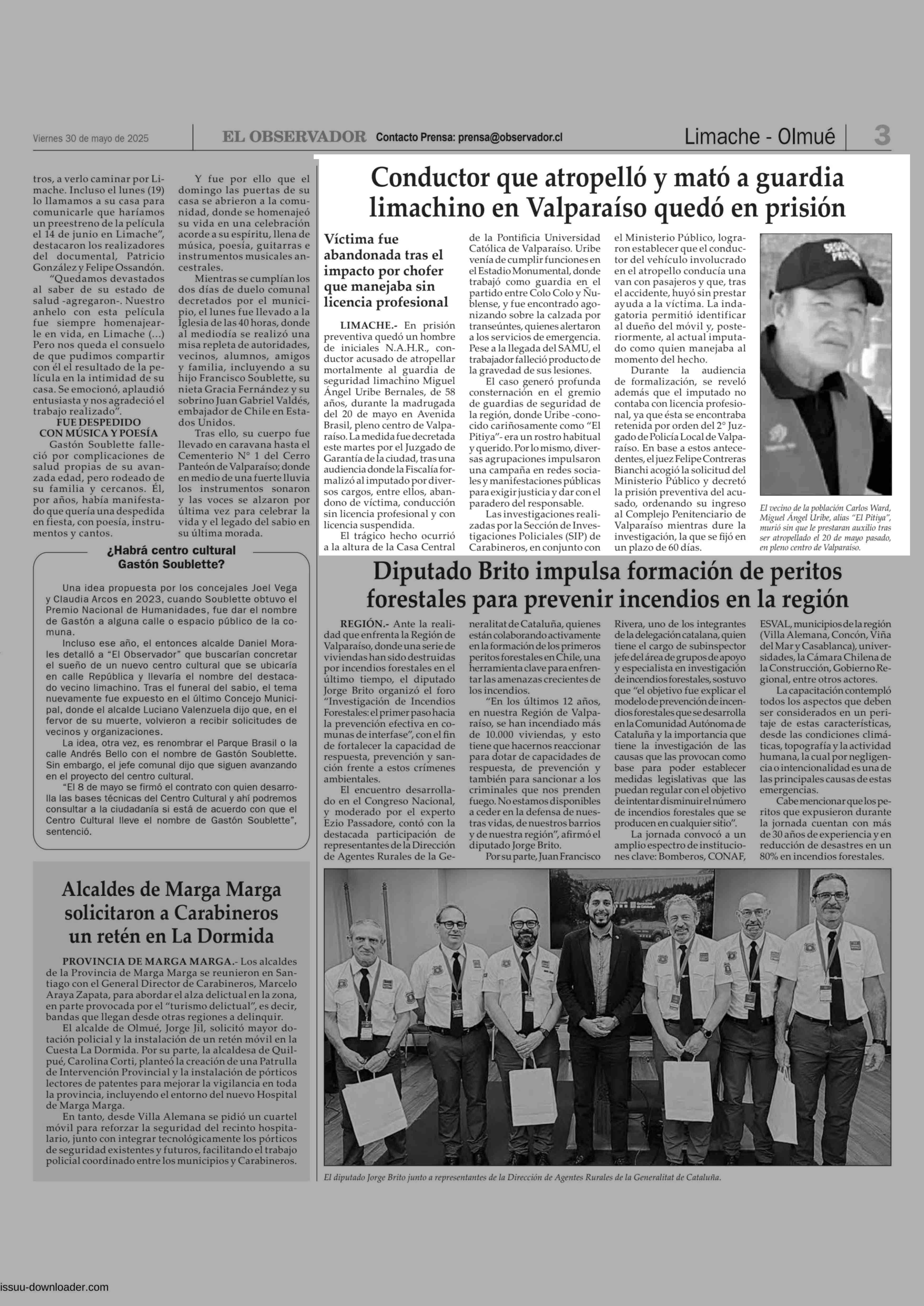 Conductor que atropelló y mató a guardia limachino en Valparaíso quedó en prisión 30-05-2025 El Observador |