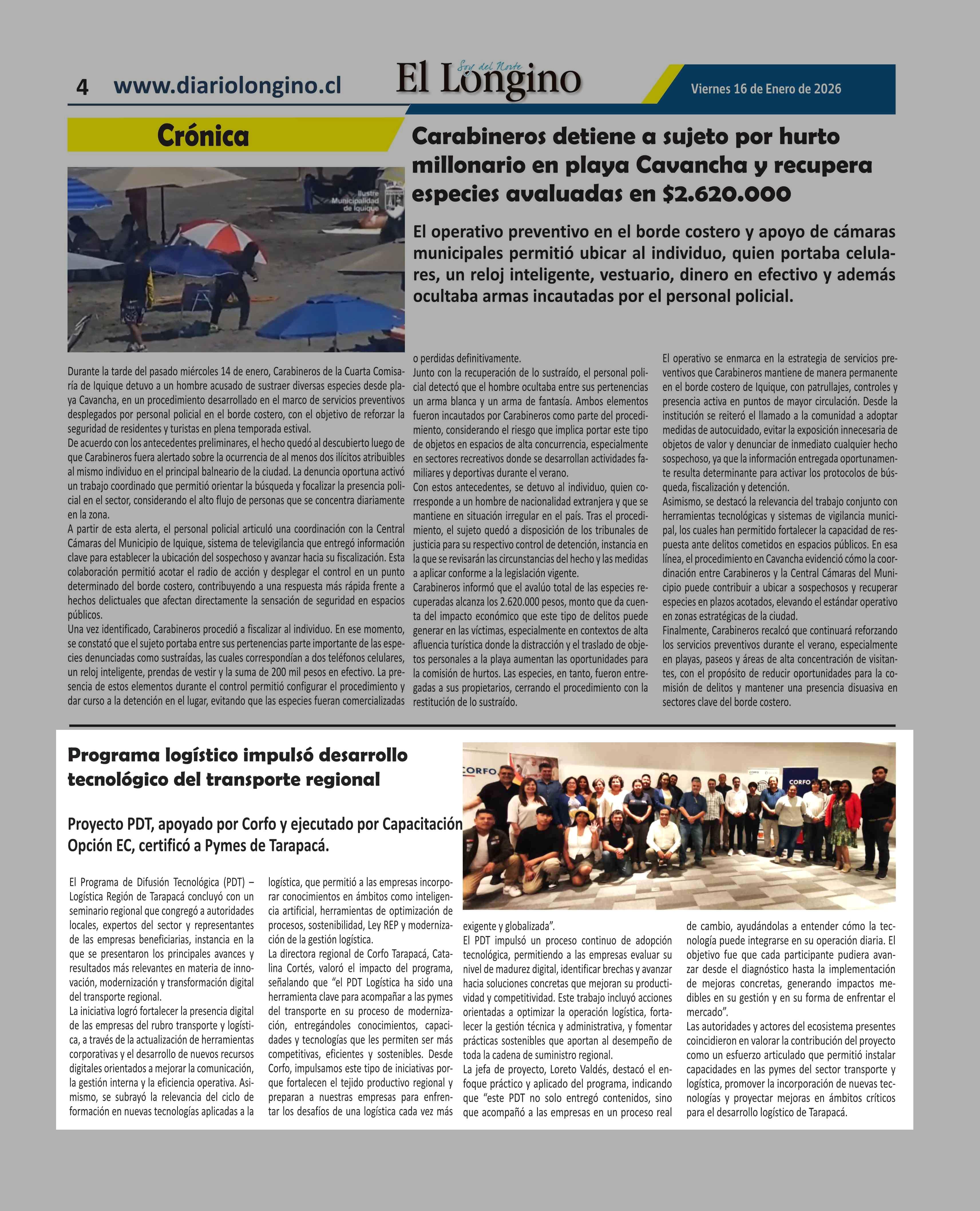 Fecha: 16-01-2026 Sector: Noticia general Región: Región de Tarapacá