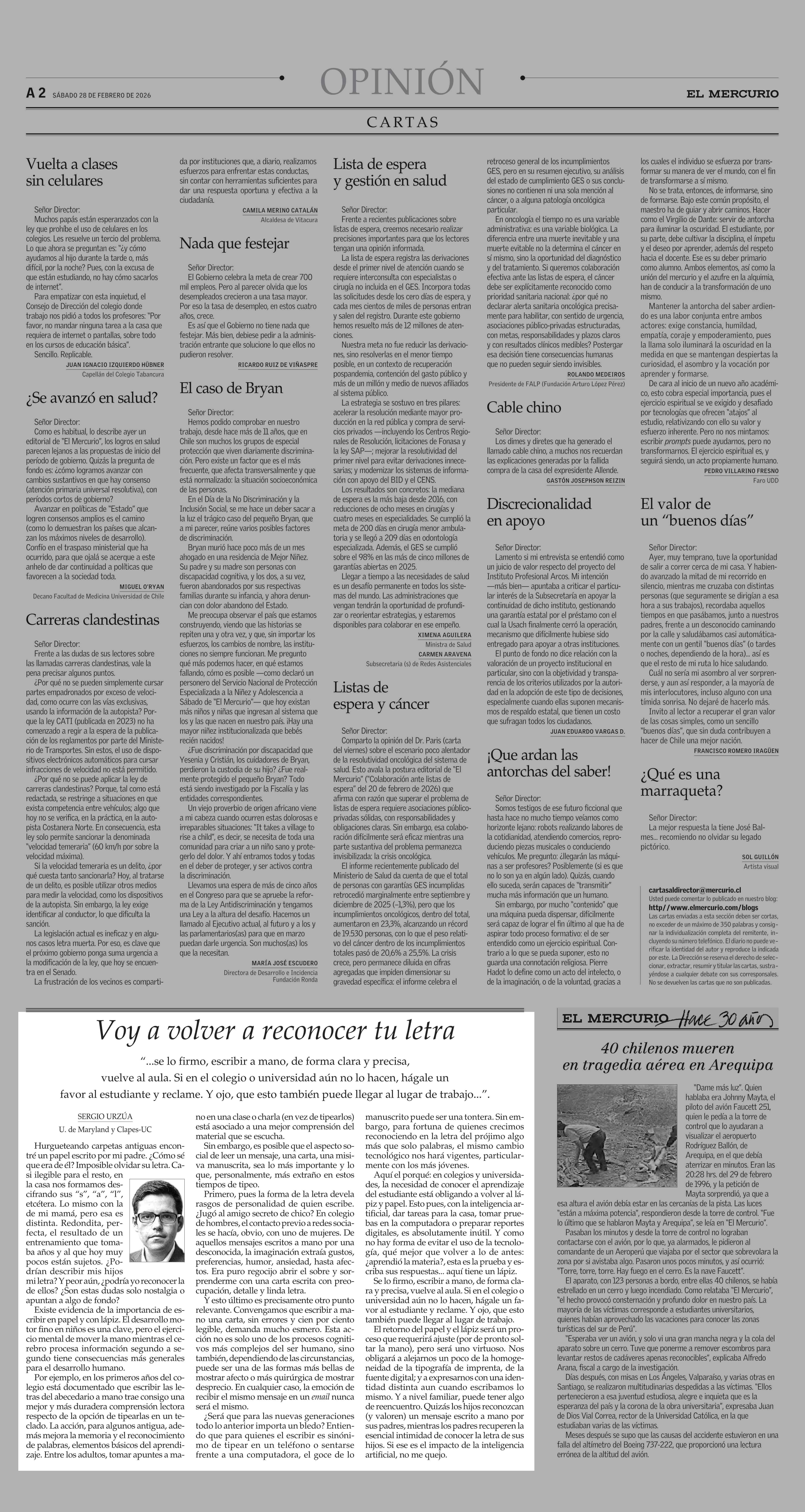 Columnas de Opinión: Voy a volver a reconocer tu letra 28-02-2026 El Mercurio |