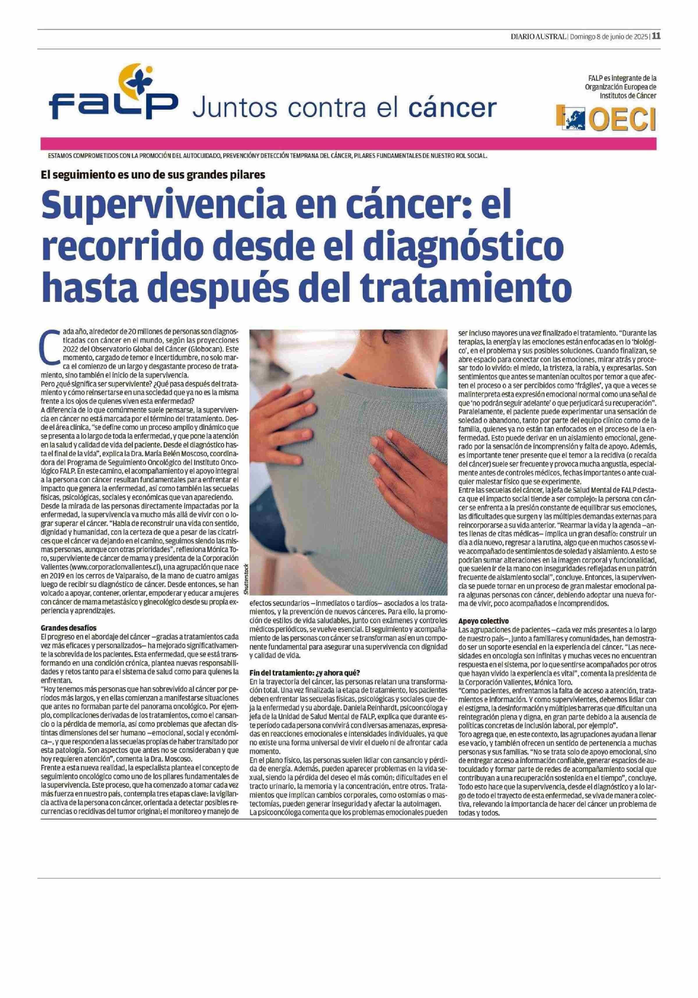 Supervivencia en cáncer: el recorrido desde el diagnóstico hasta después del tratamiento 08-06-2025 Diario Austral Región de Los Ríos |