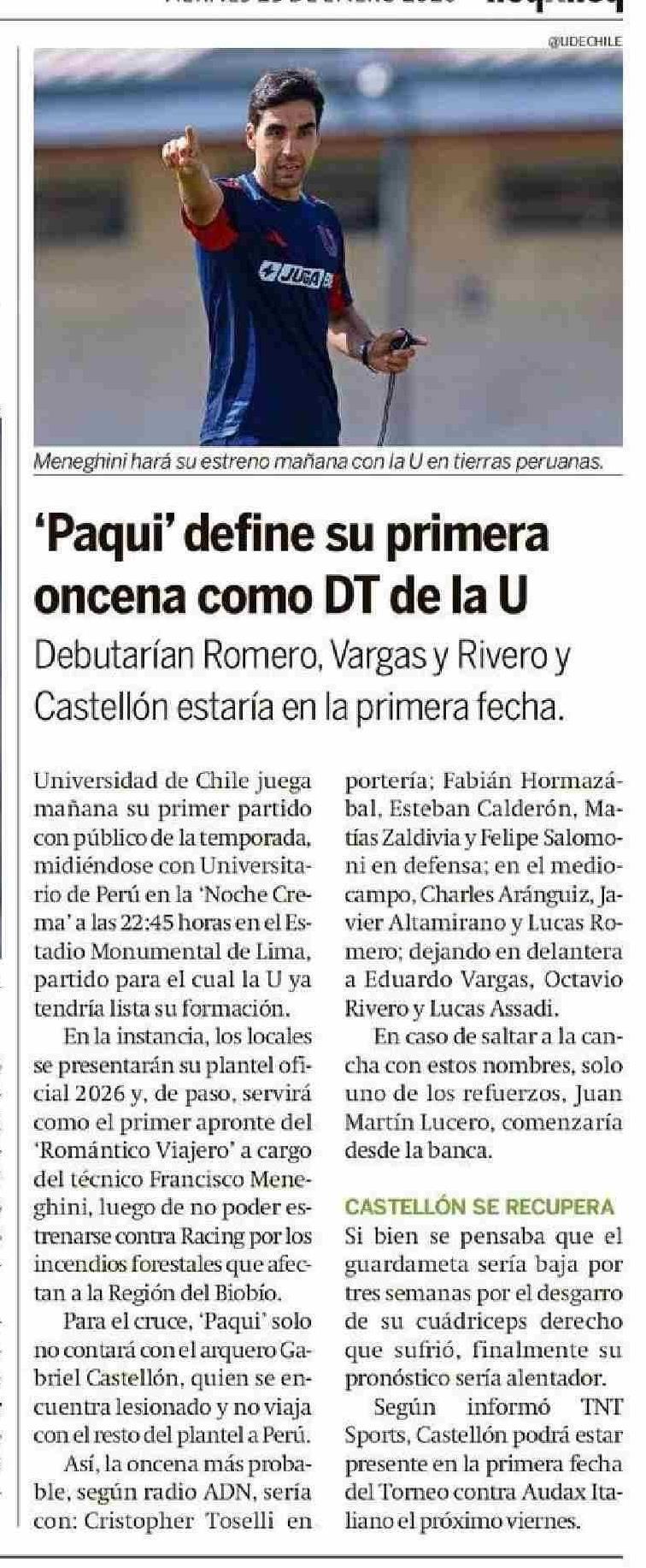 | Título: | 'Paqui' define su primera oncena como DT de la U |
