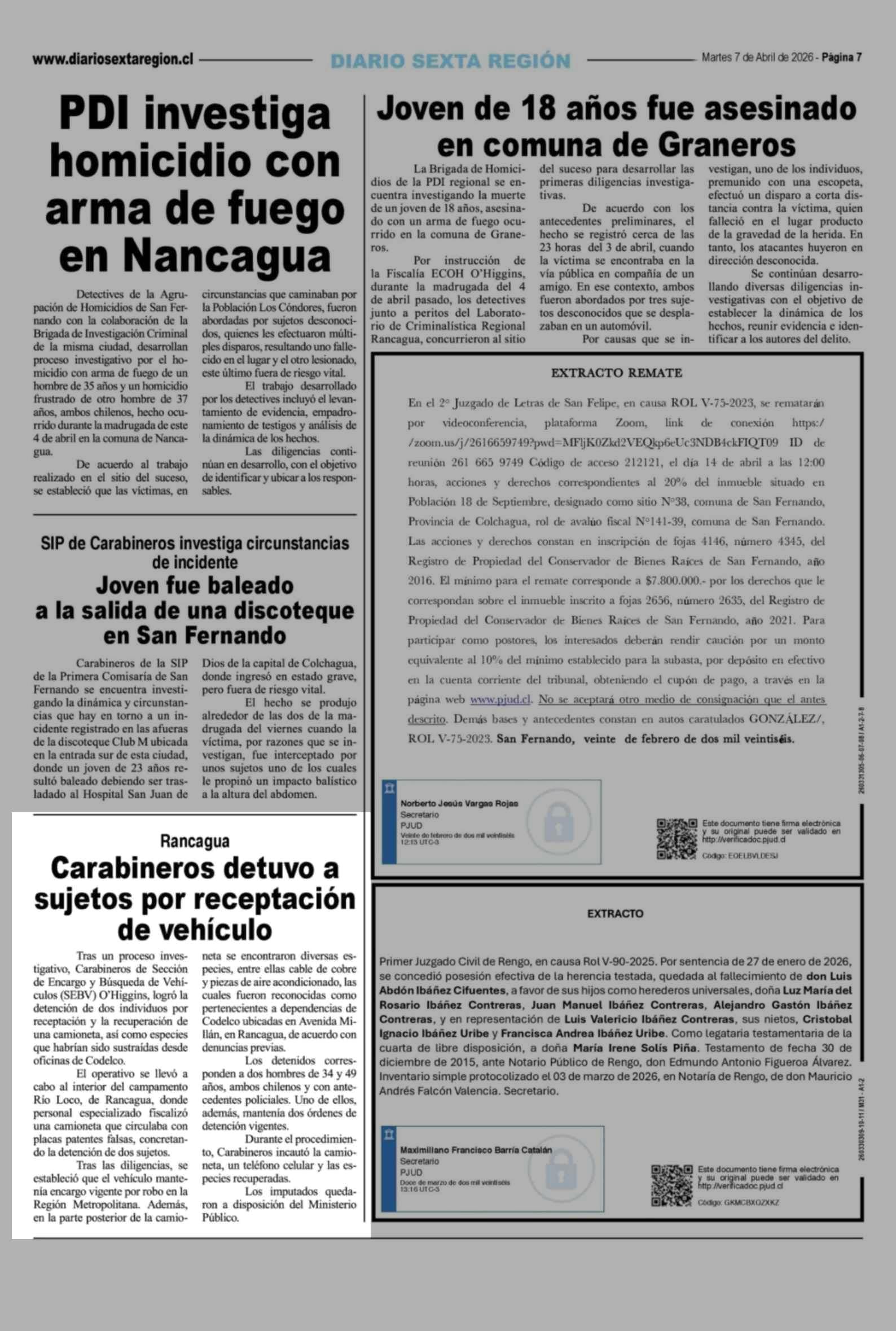 | Fecha: | 07-04-2026 | Sector: | Noticia general | Región: | Región del Libertador General Bernardo O'Higgins |