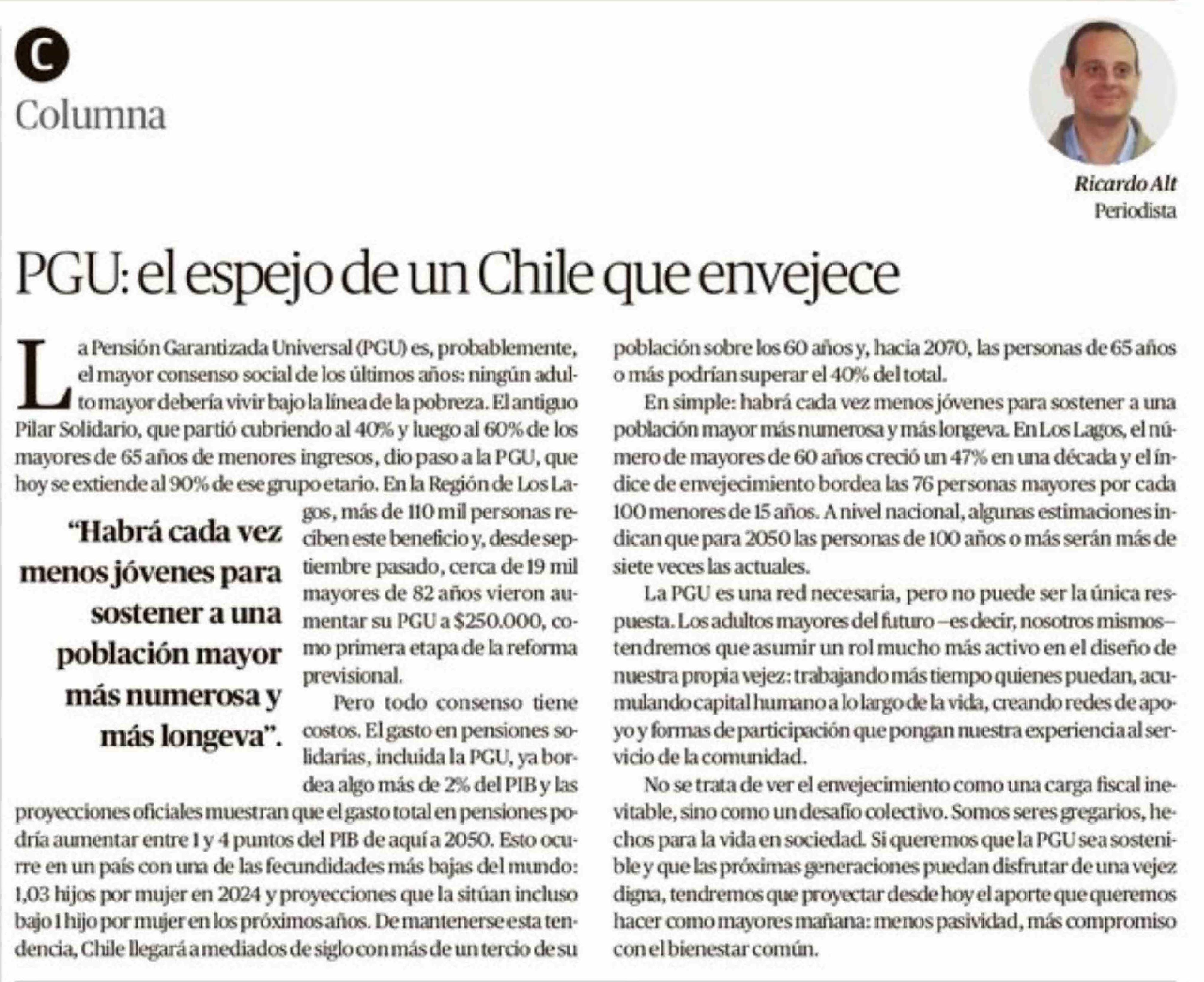 Título: Columnas de Opinión: PGU: el espejo de un Chile que envejece