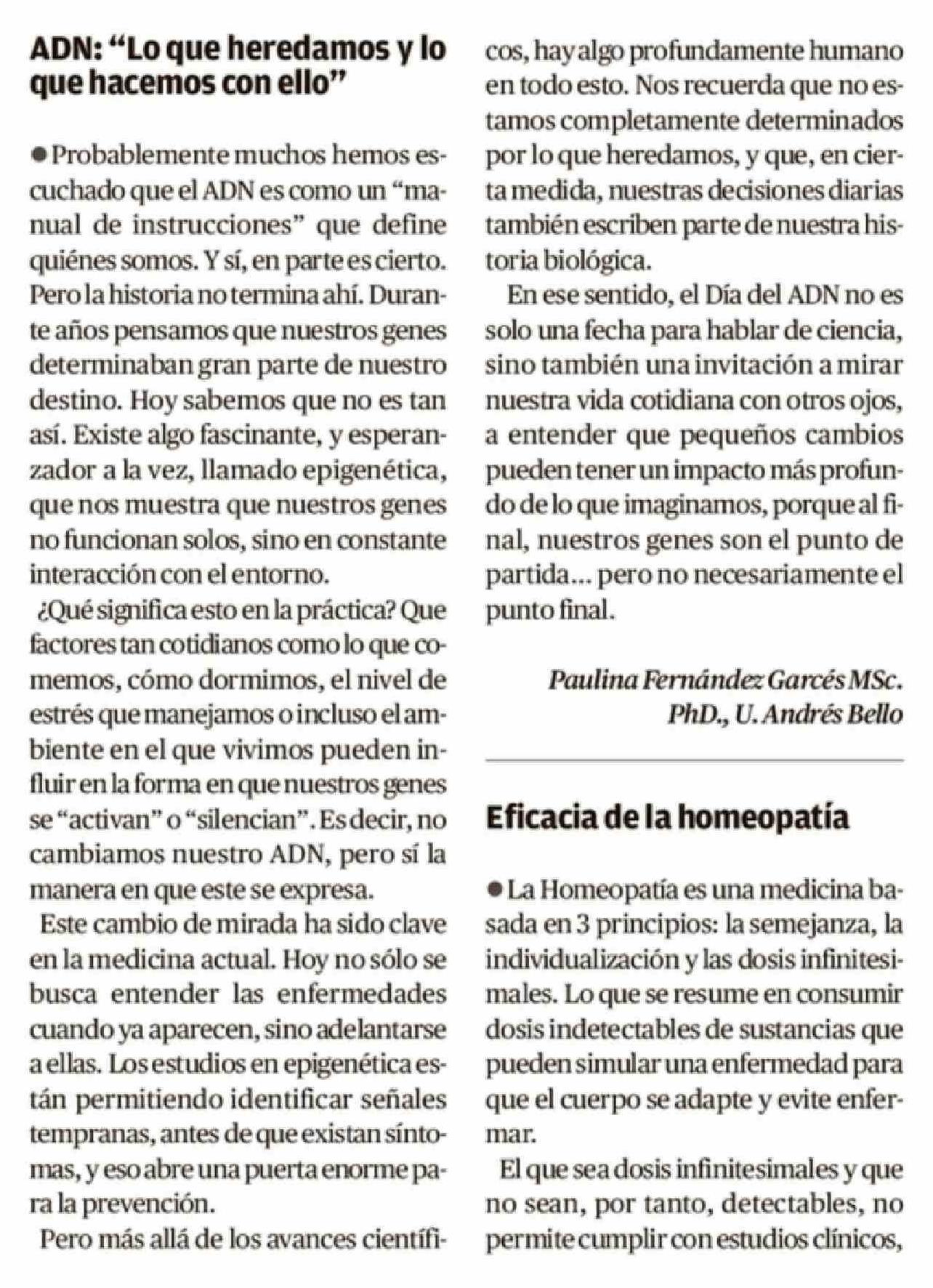 Cartas: ADN: "Lo que heredamos y lo que hacemos con ello" 28-04-2026 El Austral de la Araucanía |