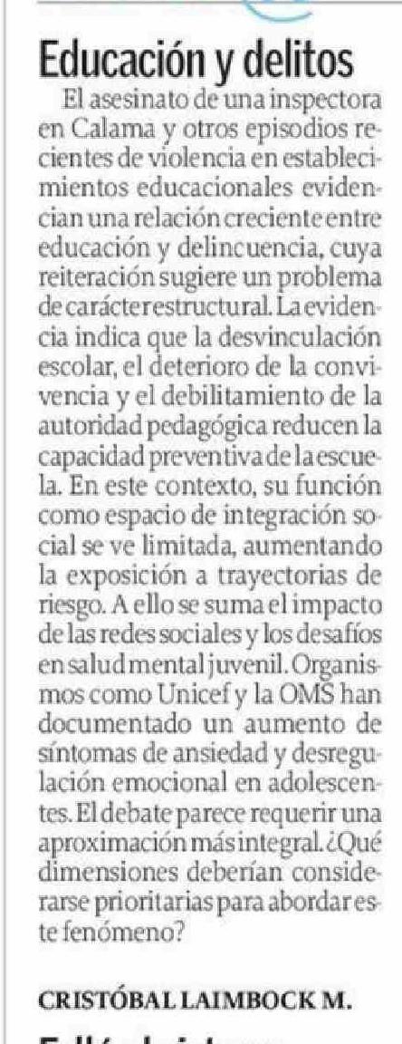 Cartas: Educación y delitos 07-04-2026 El Sur |