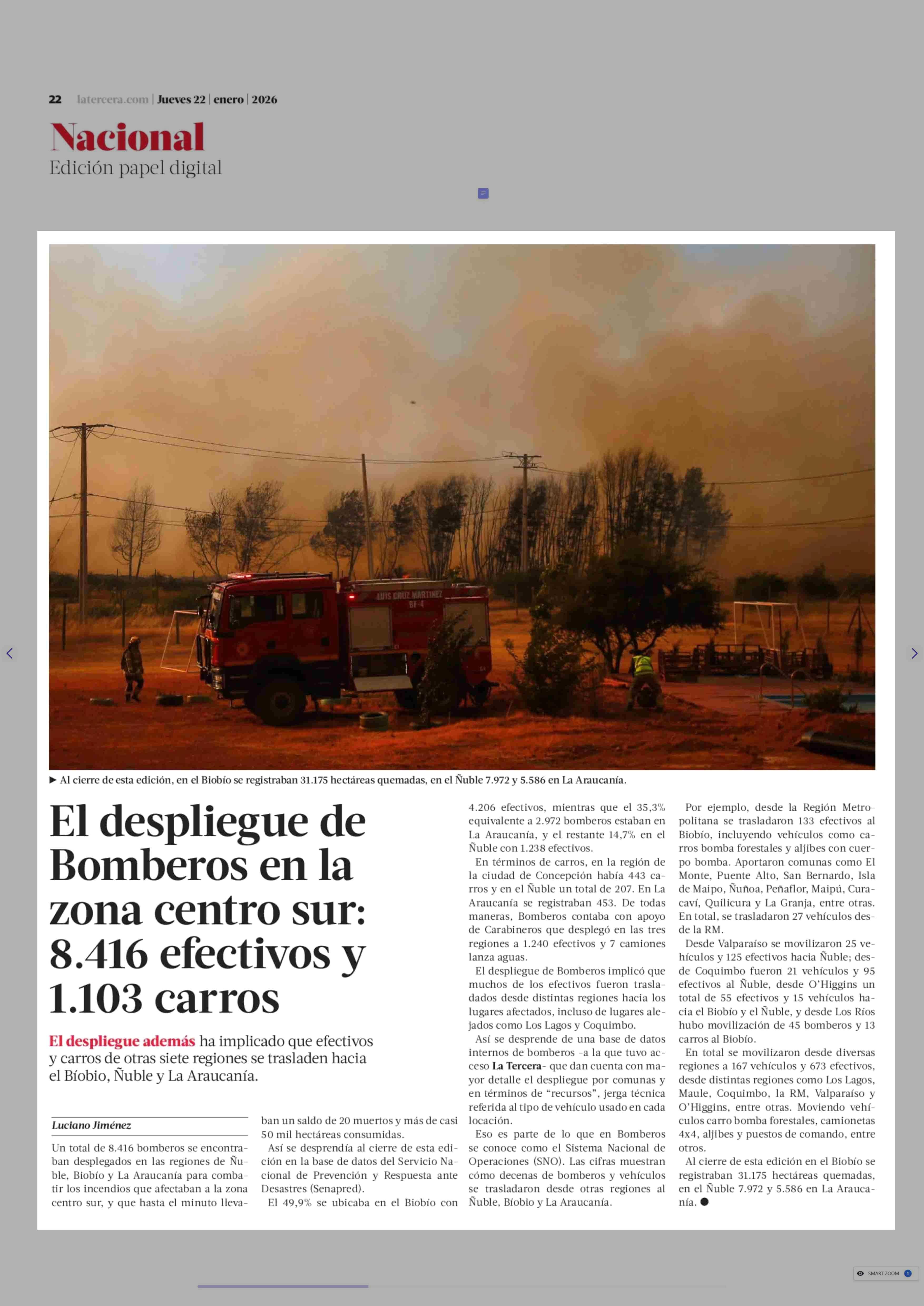 Título: El despliegue de Bomberos en la zona centro sur: 8.416 efectivos y 1.103 carros