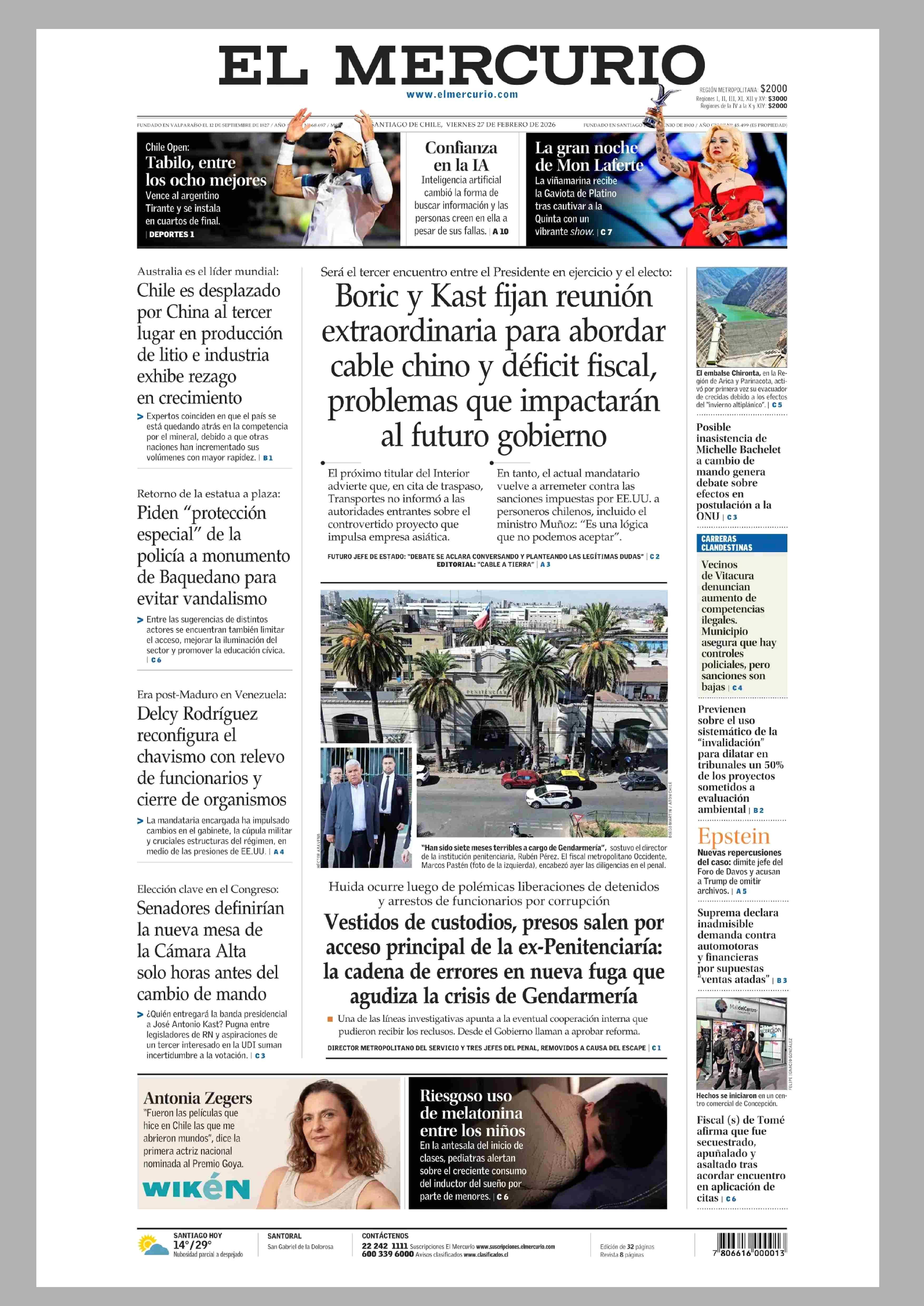 | Fecha: | 27-02-2026 | Sector: | Portada | Región: | Región Metropolitana de Santiago |
