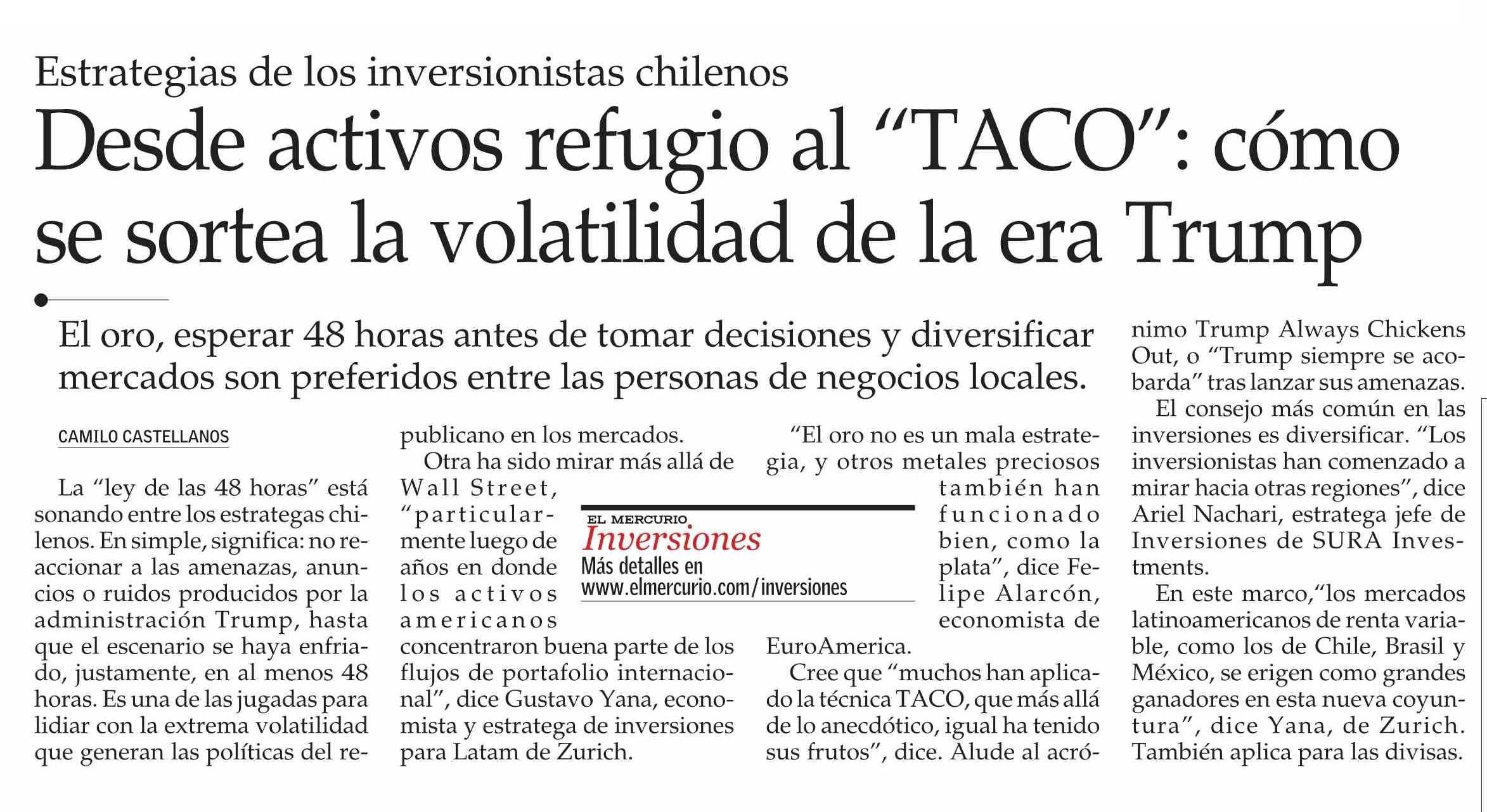 Desde activos refugio al "TACO": cómo se sortea la volatilidad de la era Trump 12-06-2025 El Mercurio |