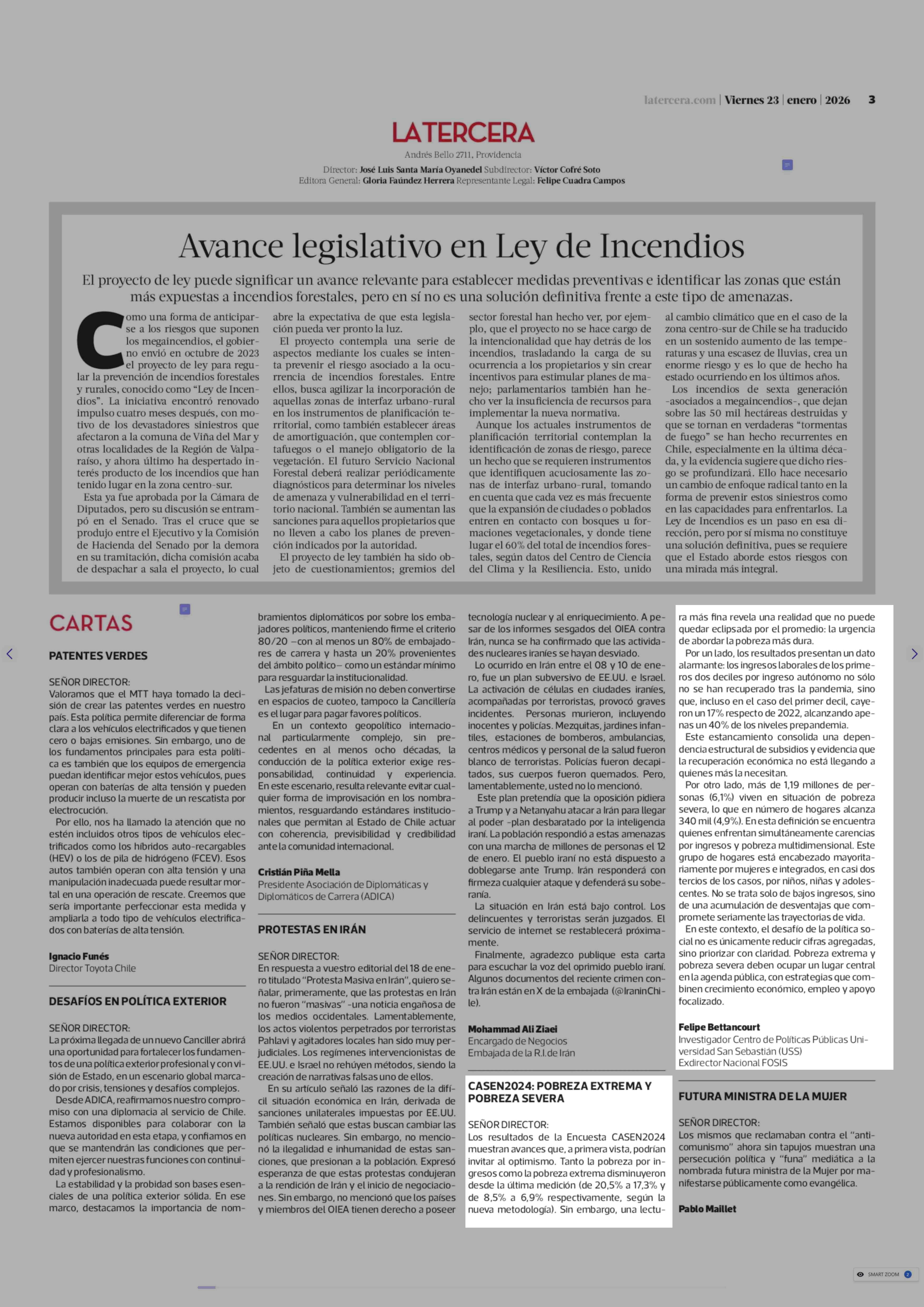 Fecha: 23-01-2026 Sector: Opinión - Cartas Región: Región Metropolitana de Santiago