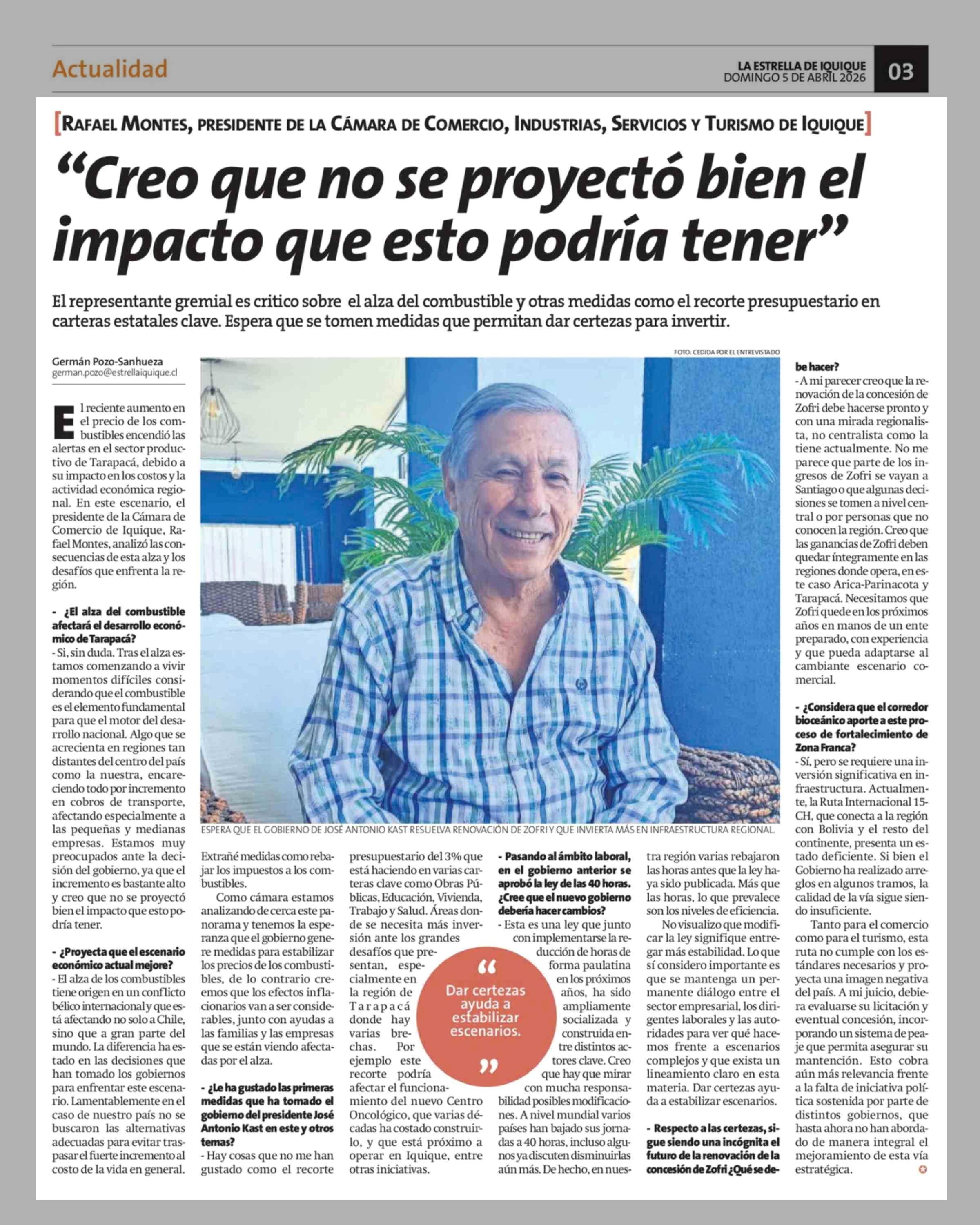 "Creo que no se proyecto bien el impacto que esto podría tener" 05-04-2026 La Estrella de Iquique |