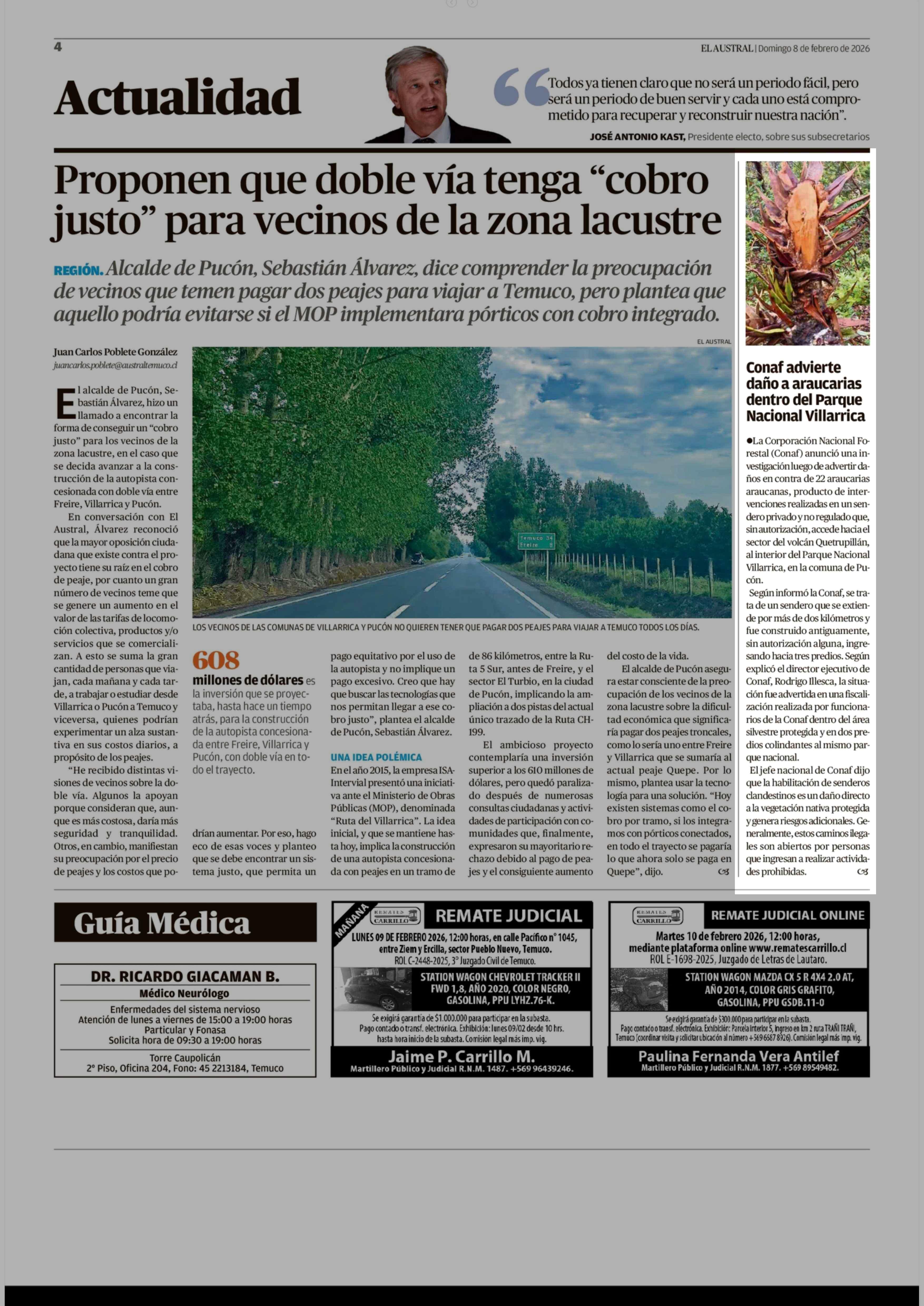 Fecha: 08-02-2026 Sector: Noticia general Región: Región de la Araucanía