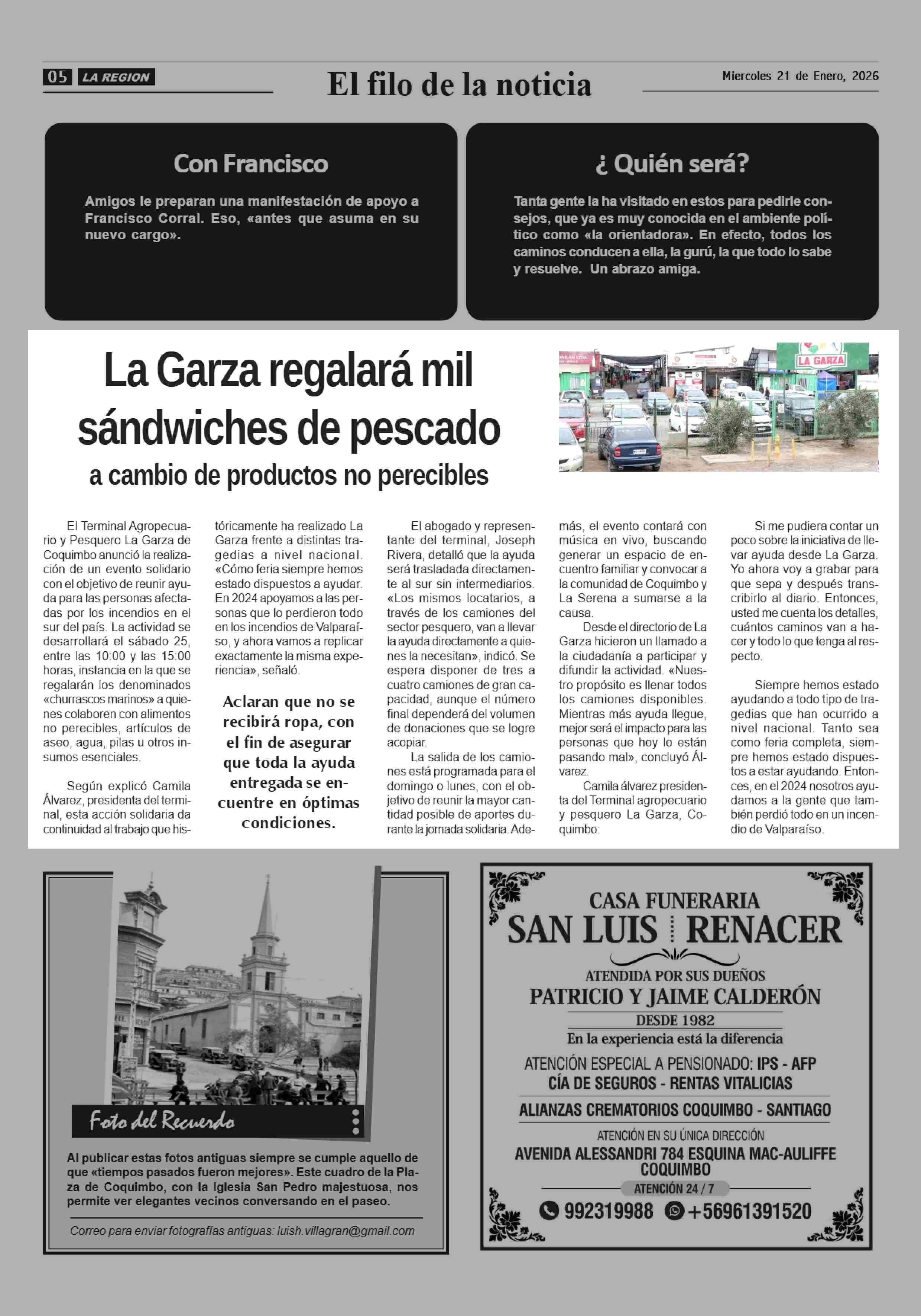 | Fecha: | 21-01-2026 | Sector: | Noticia general | Región: | Región de Coquimbo |