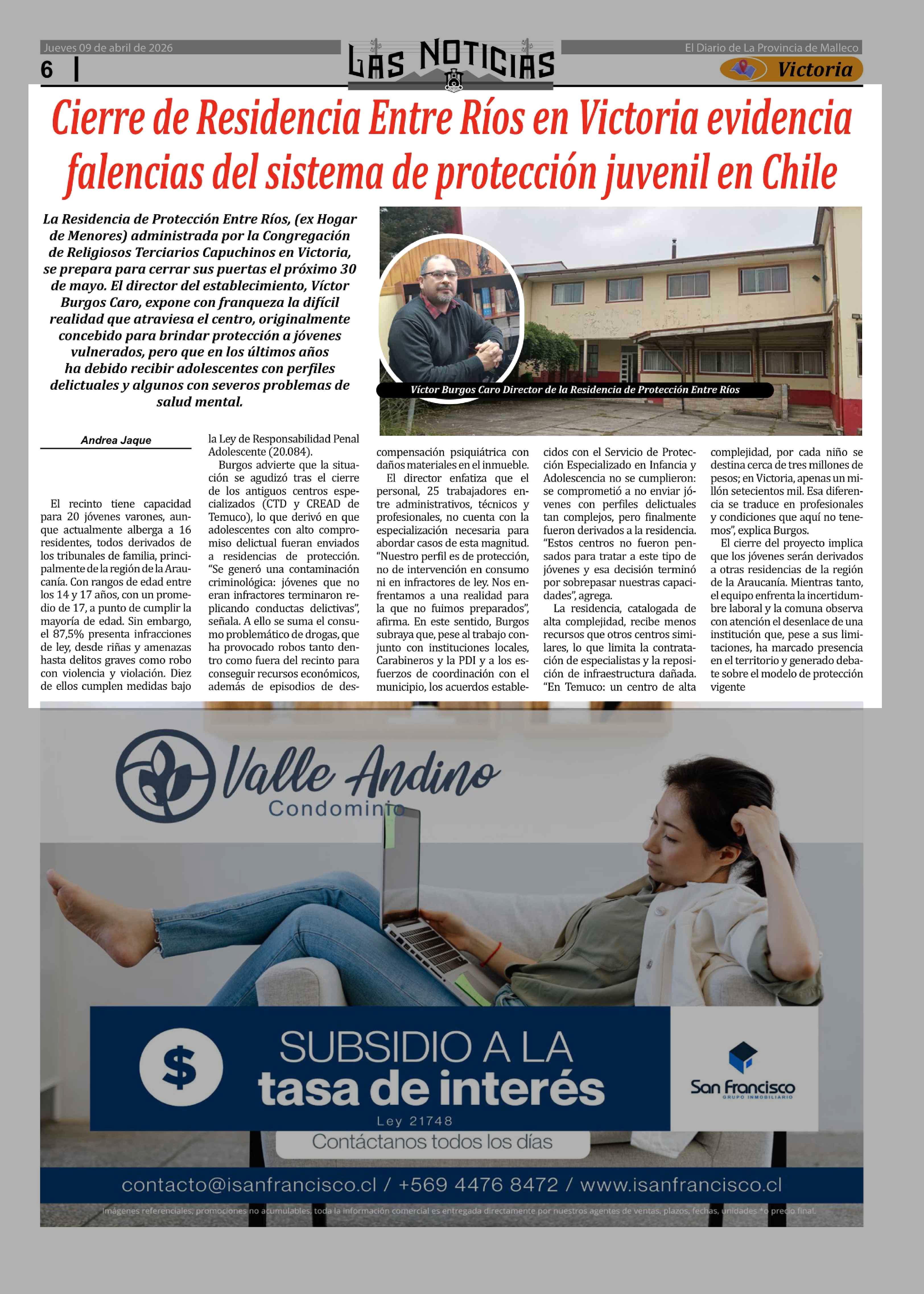 Cierre de Residencia Entre Ríos en Victoria evidencia falencias del sistema de protección juvenil en Chile 09-04-2026 Las Noticias |