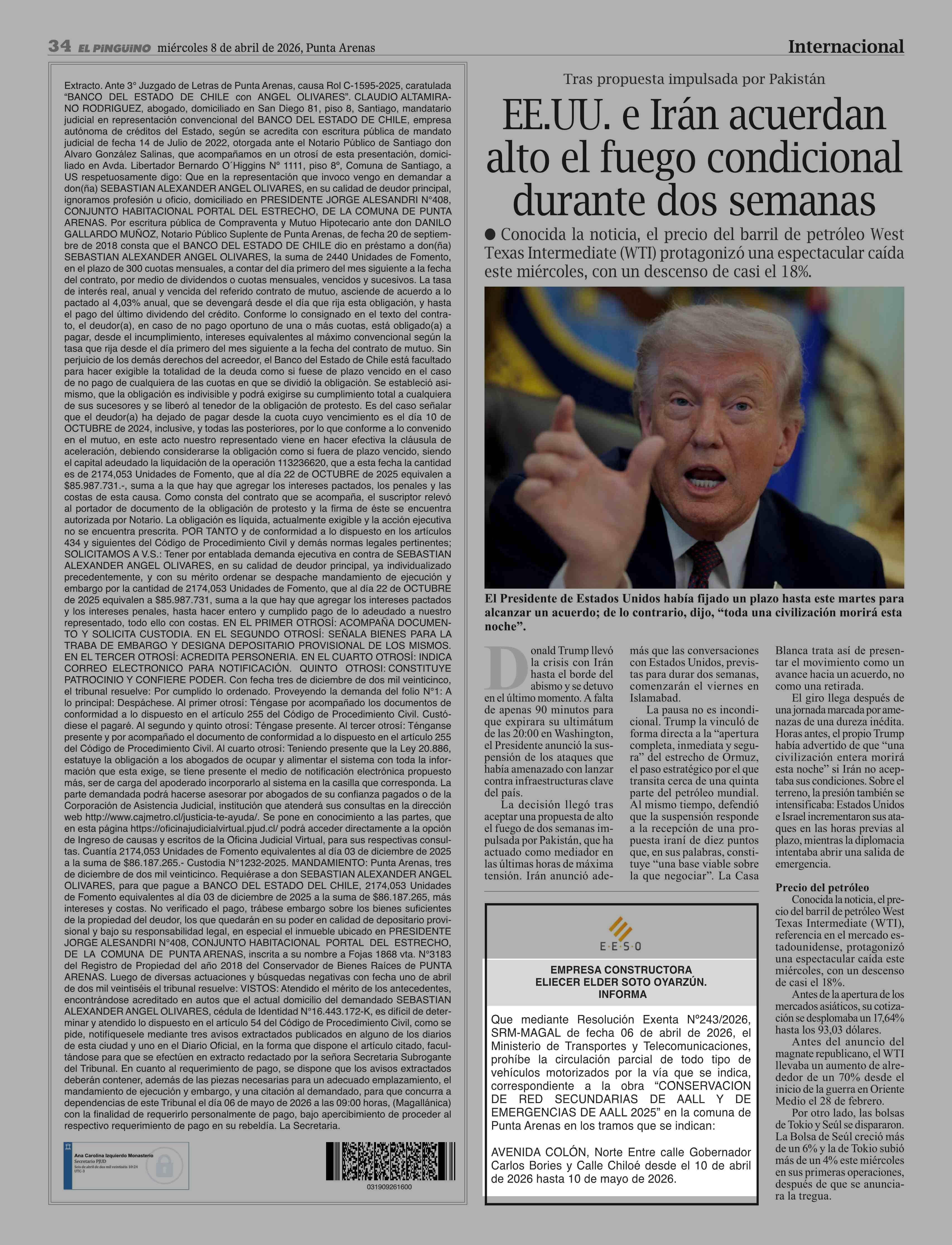 Extractos: EMPRESA CONSTRUCTORA ELIECER ELDER SOTO OYARZÚN. INFORMA 08-04-2026 El Pingüino |