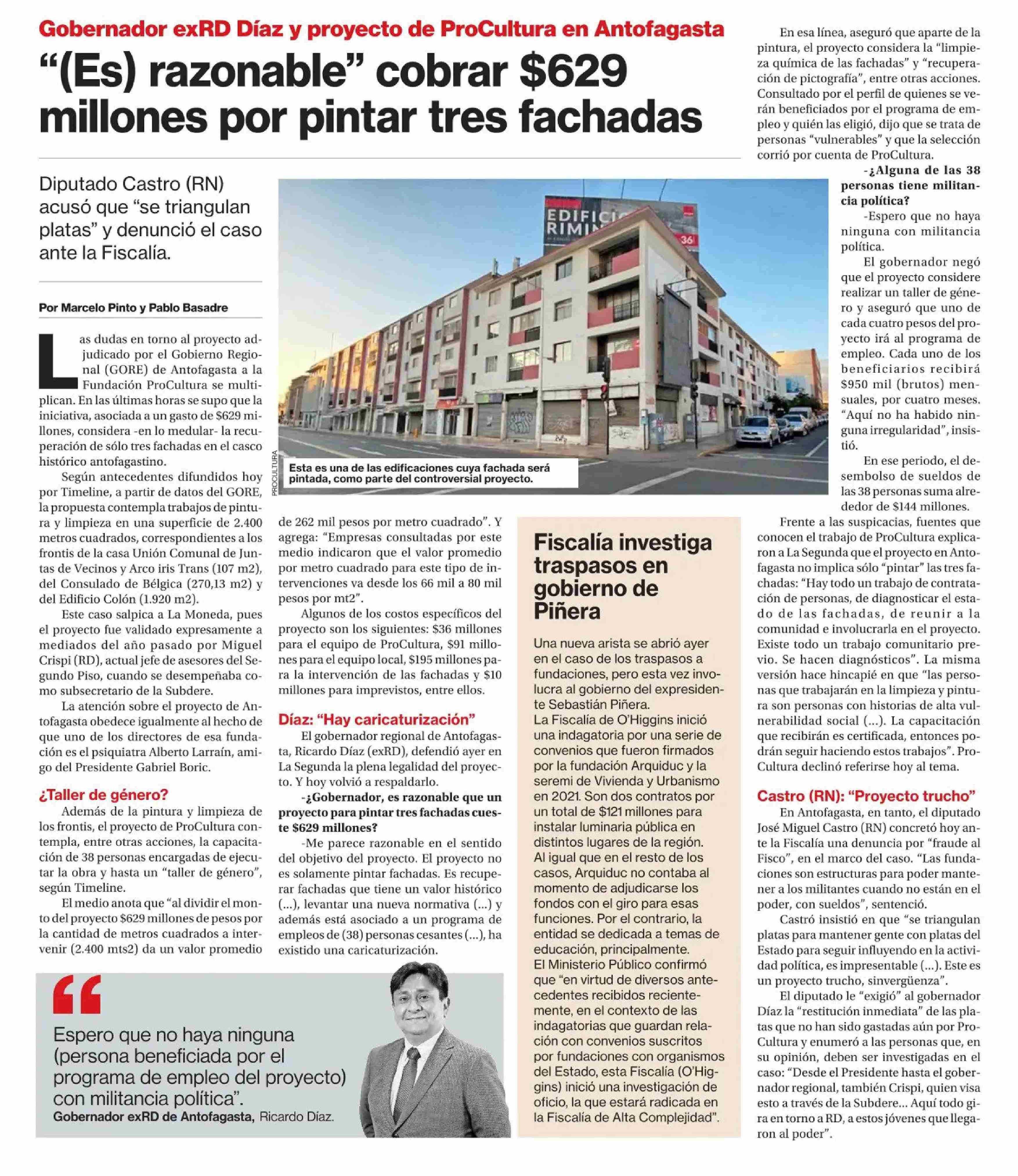 "(Es) razonable" cobrar $629 millones por pintar tres fachadas millones por pintar tres fachadas 07-07-2023 La Segunda |