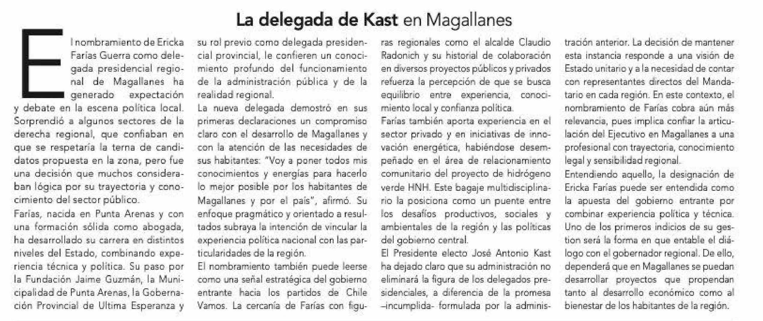 Título: EDITORIAL: La delegada de Kast en Magallanes