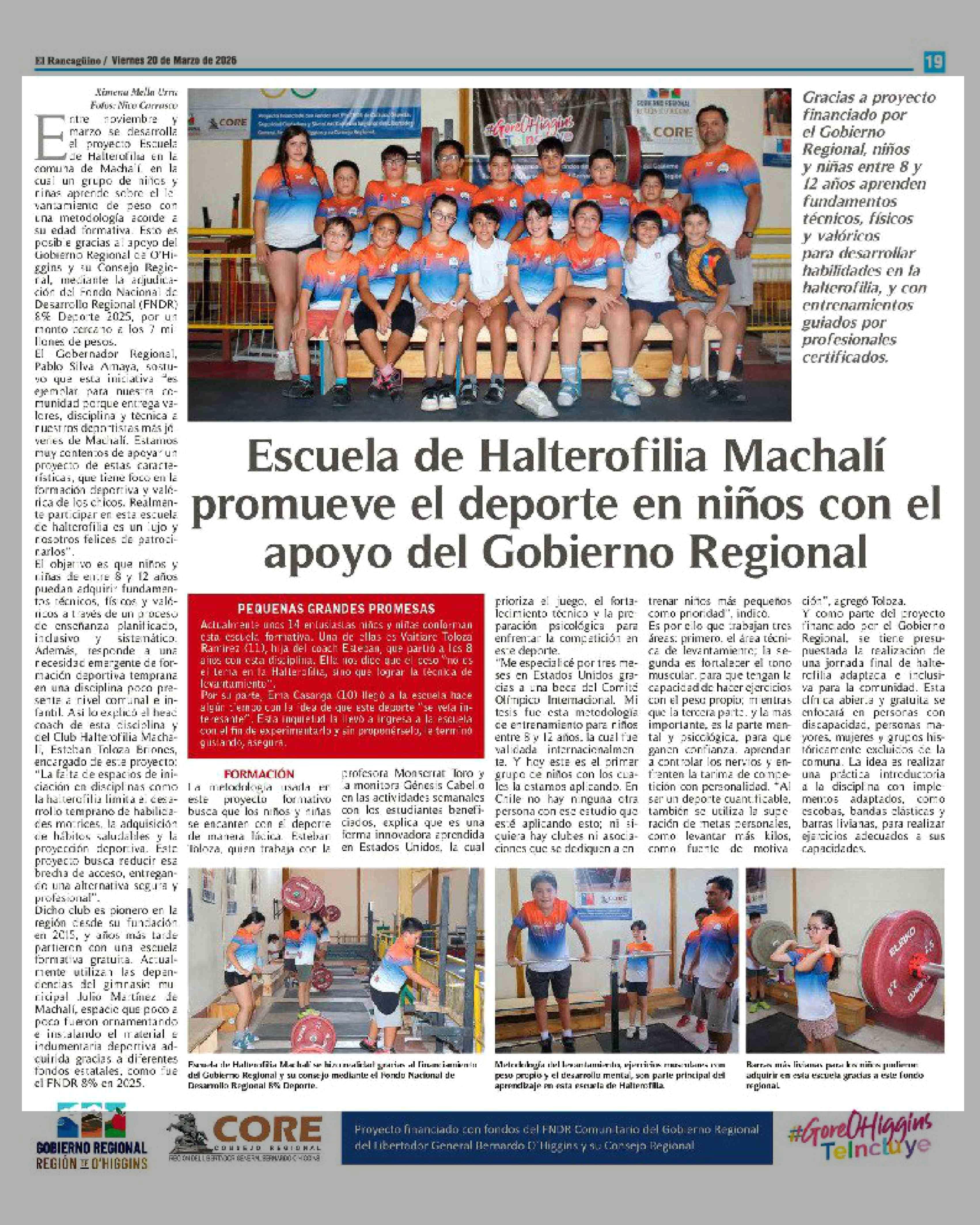 Escuela de Halterofilia Machalí promueve el deporte en niños con el apoyo del Gobierno Regional 20-03-2026 El Rancagüino |
