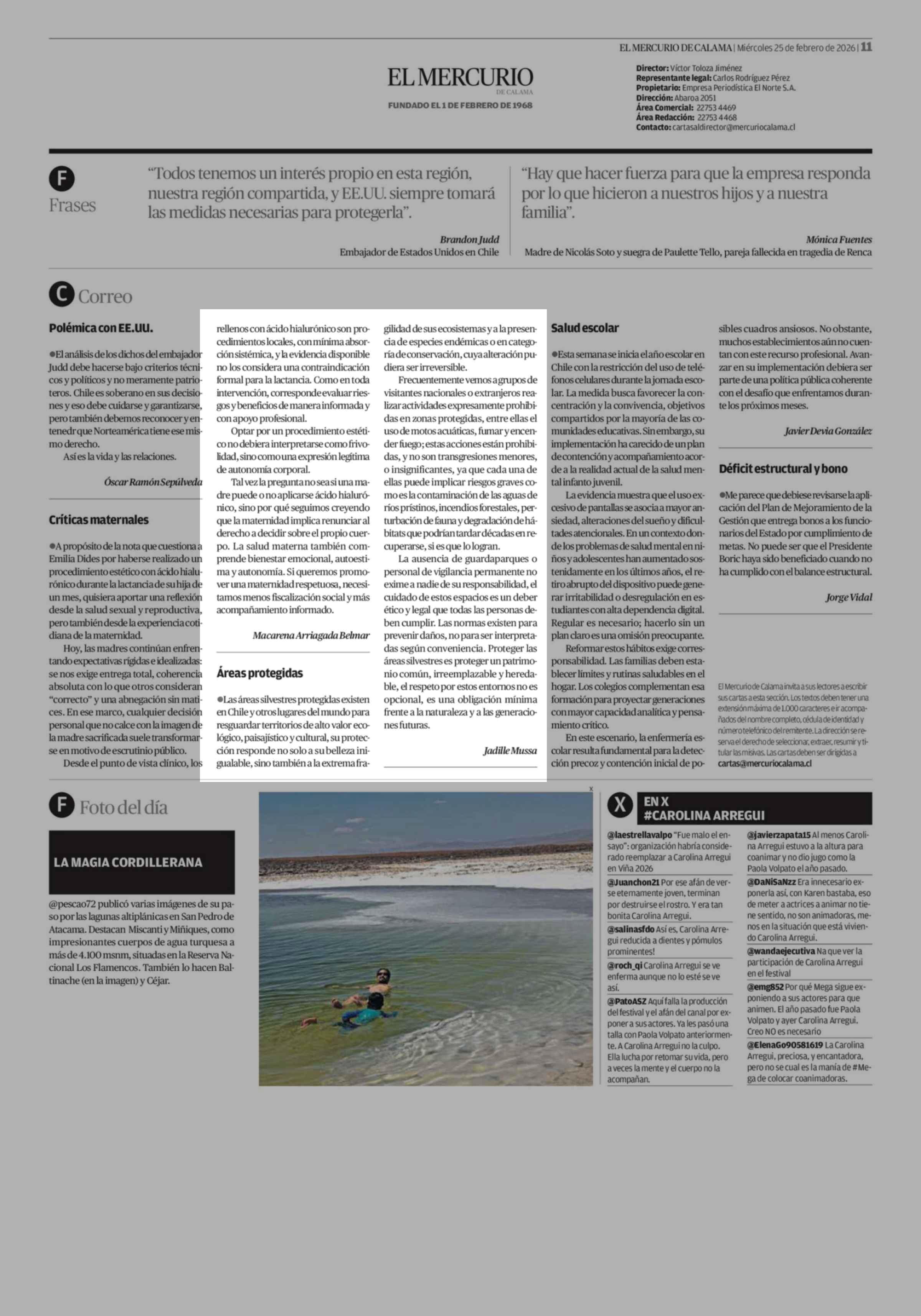 Fecha: 25-02-2026 Sector: Cartas Región: Región de Antofagasta