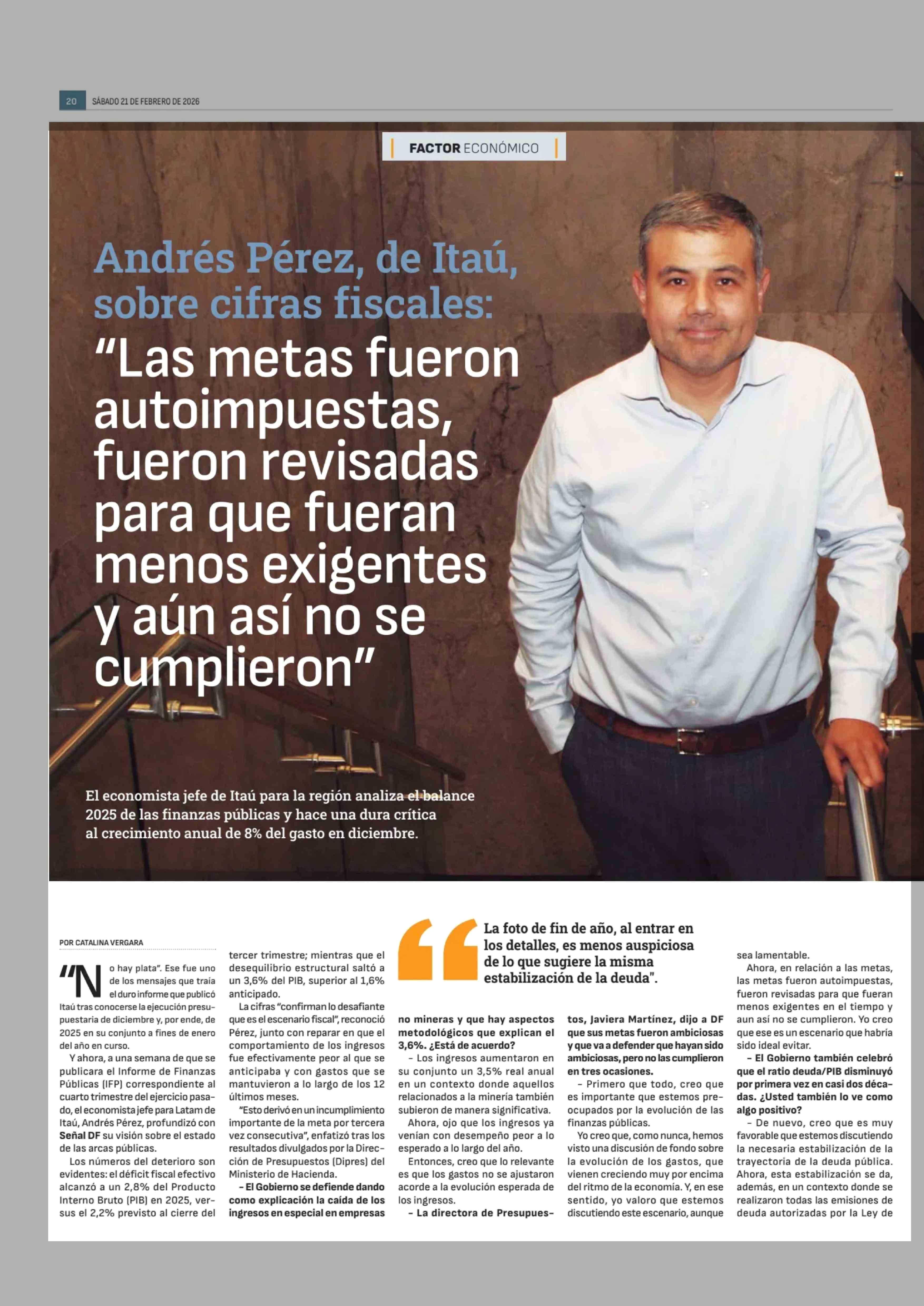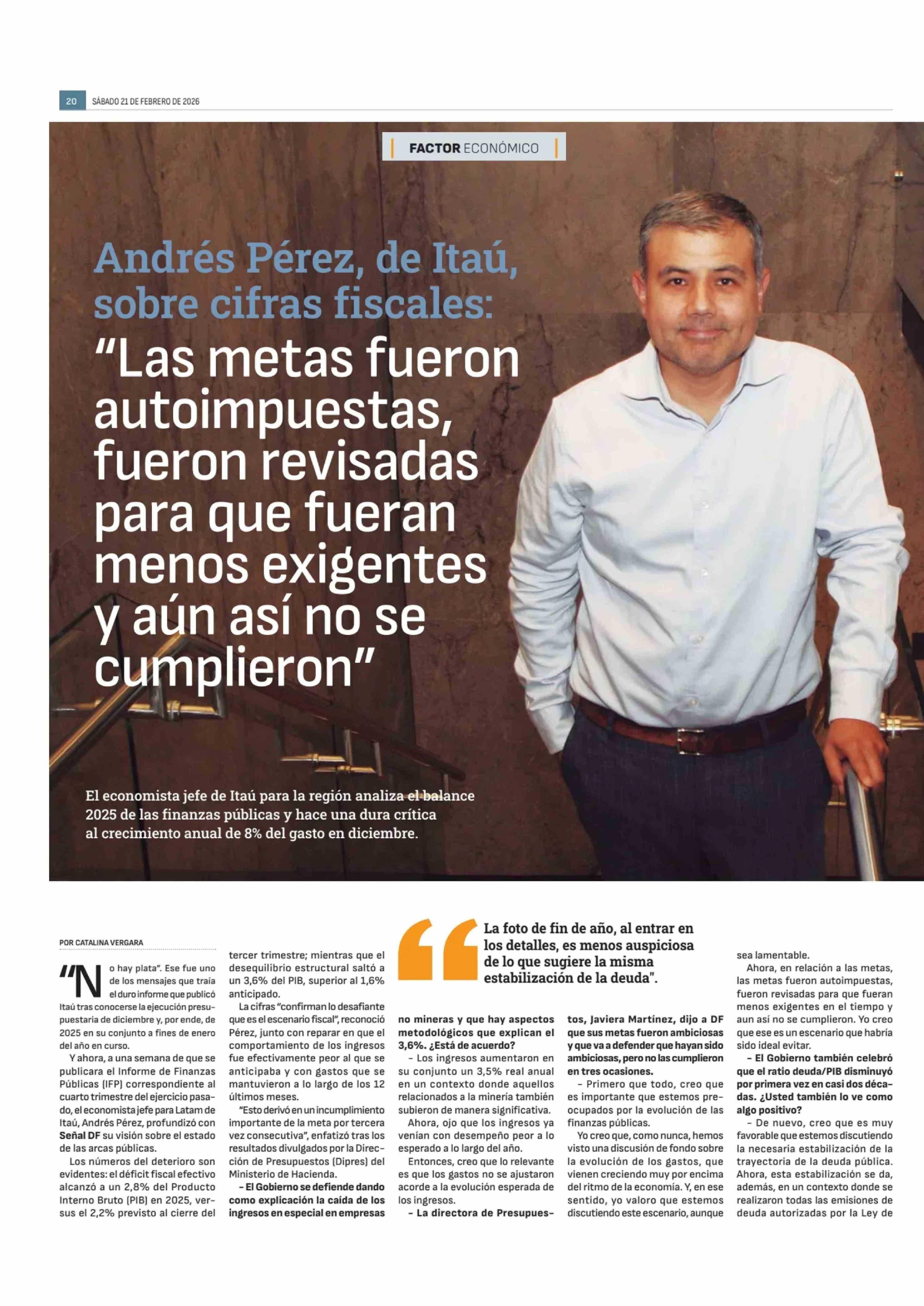 Título: Andrés Pérez, de Itaú Sobre cifras fiscales: "Las metas fueron autoimpuestas, fueron revisadas para que fueran menos exigentes y aún así no se cumplieron"