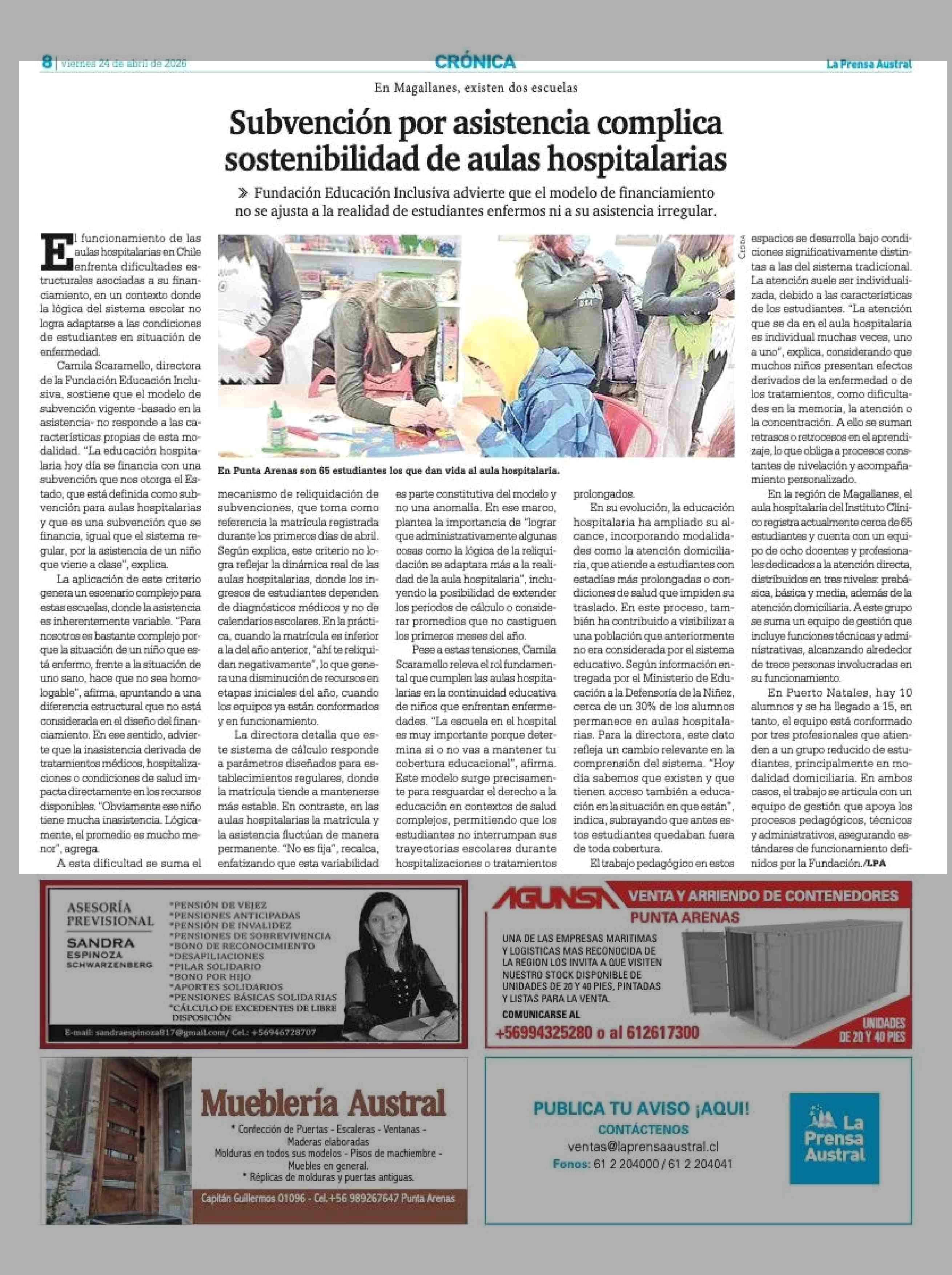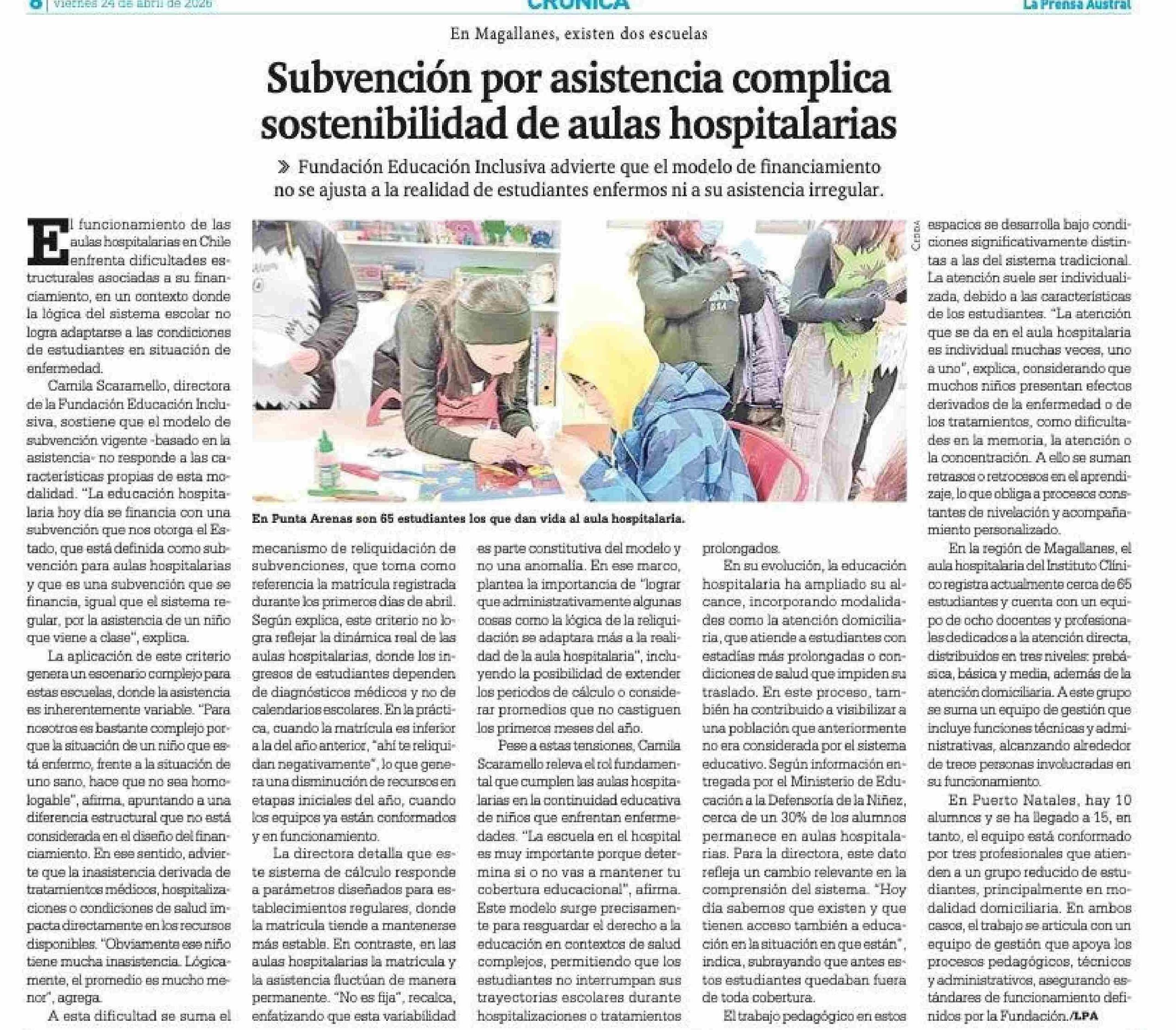 Título: Subvención por asistencia complica sostenibilidad de aulas hospitalarias