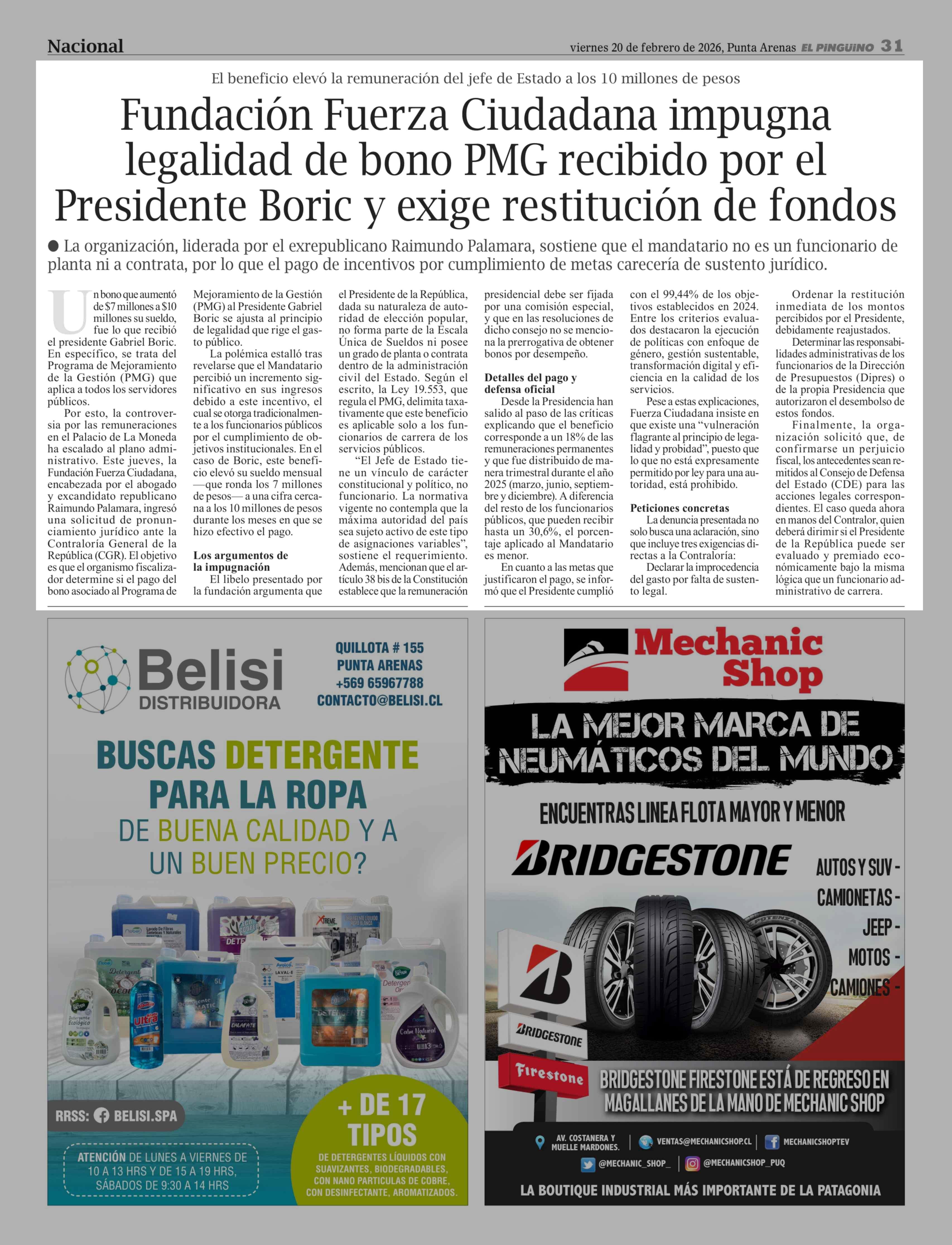 Título: Fundación Fuerza Ciudadana impugna legalidad de bono PMG recibido por el Presidente Boric y exige restitución de fondos