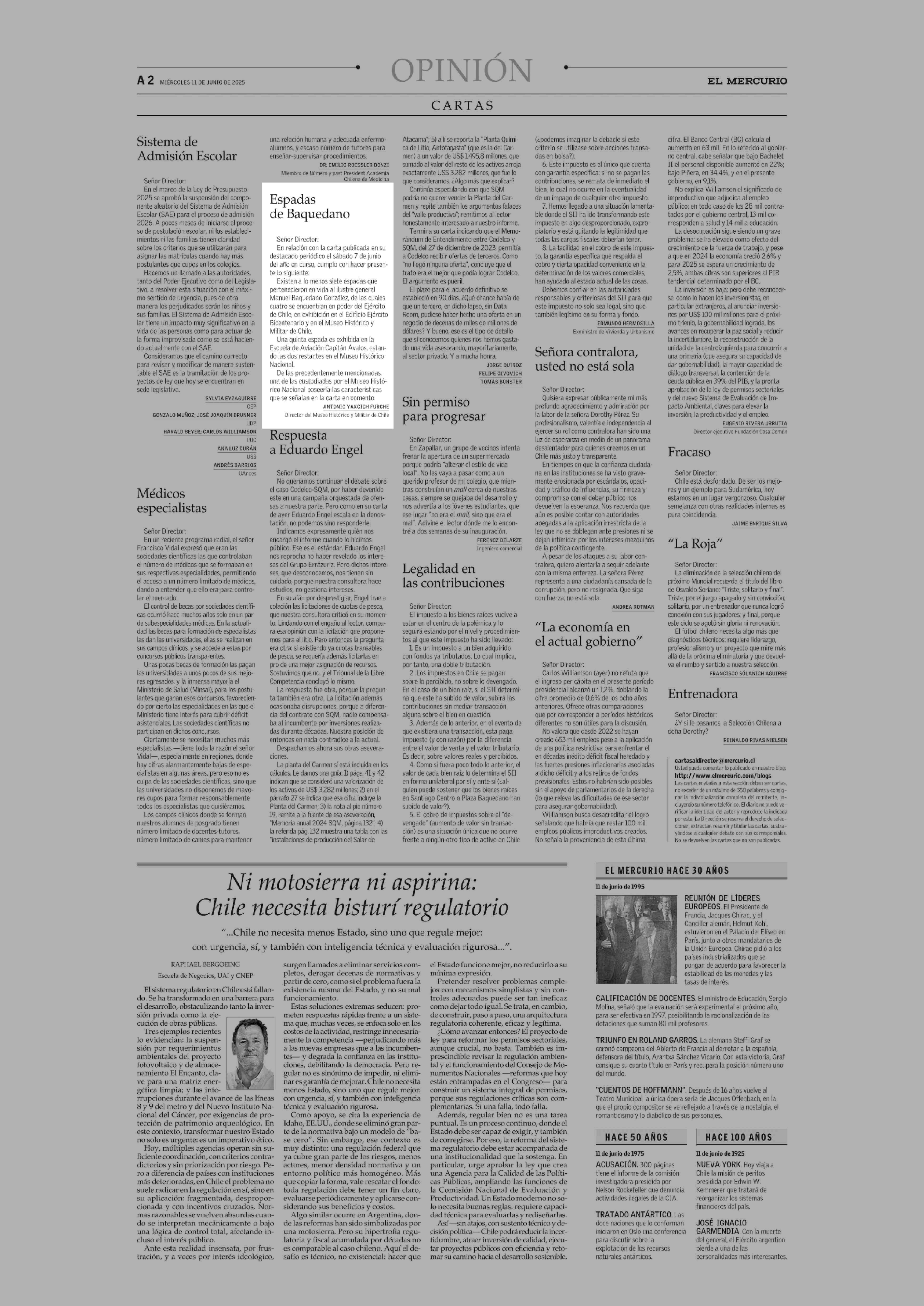 CARTAS: Espadas de Baquedano 11-06-2025 El Mercurio |