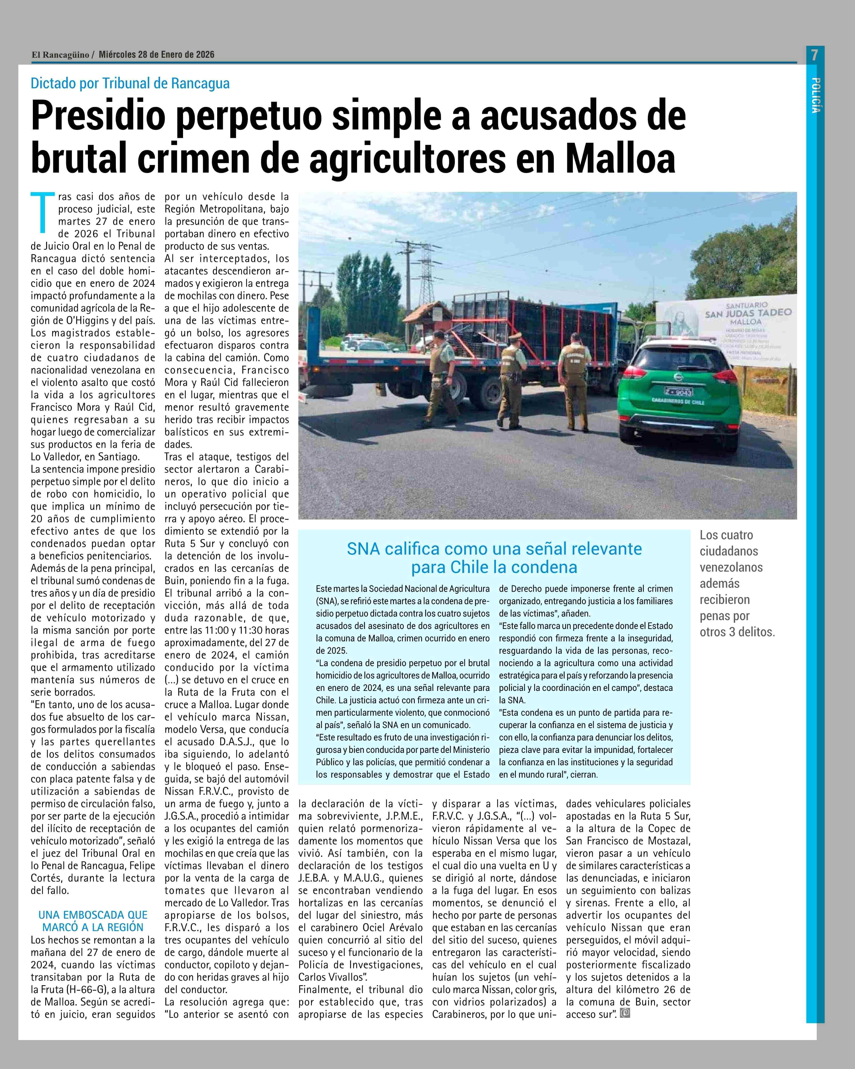 Título: Presidio perpetuo simple a acusados de brutal crimen de agricultores en Malloa