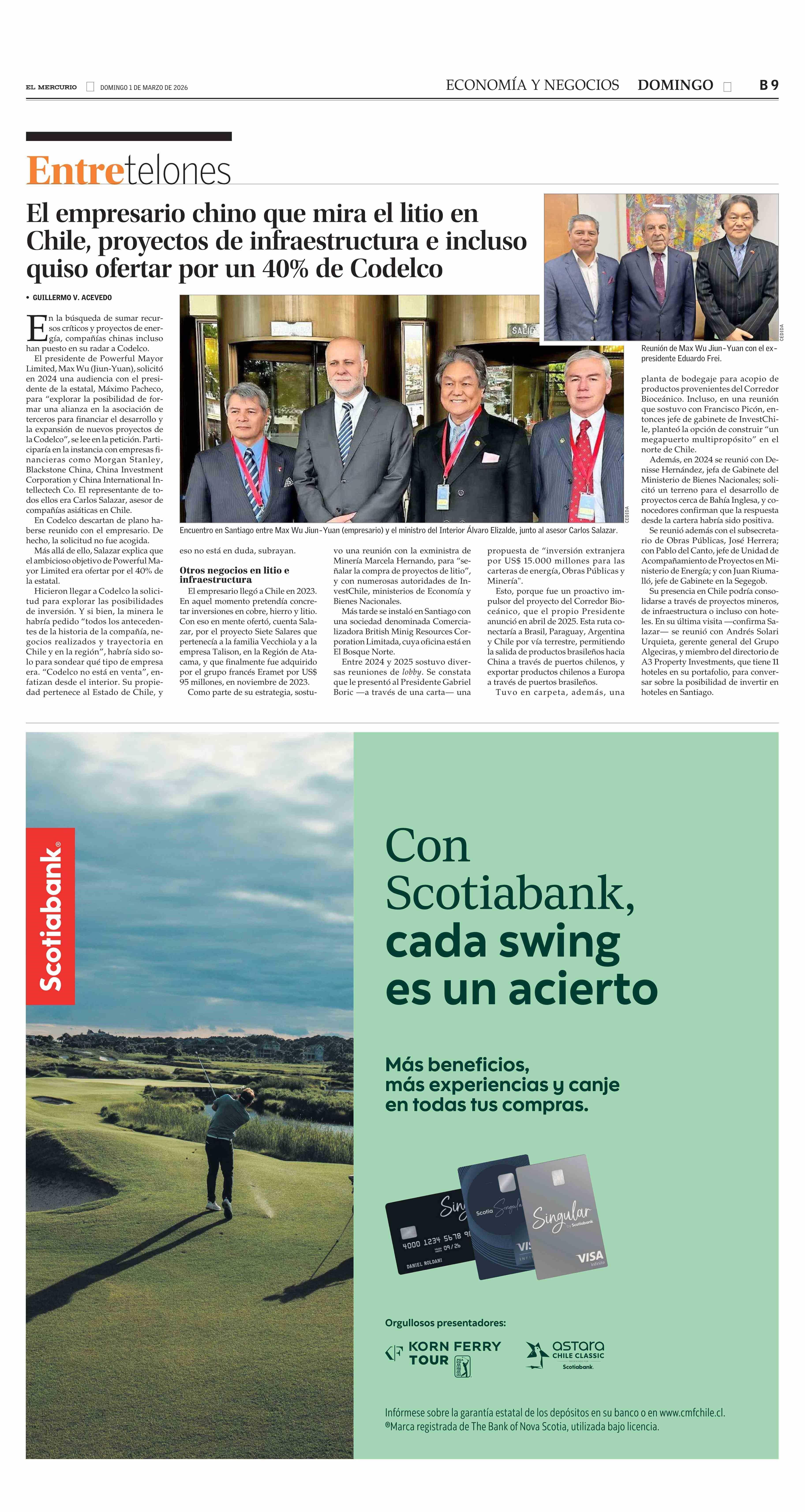 Título: El empresario chino que mira el litio en Chile, proyectos de infraestructura e incluso quiso ofertar por un 40% de Codelco