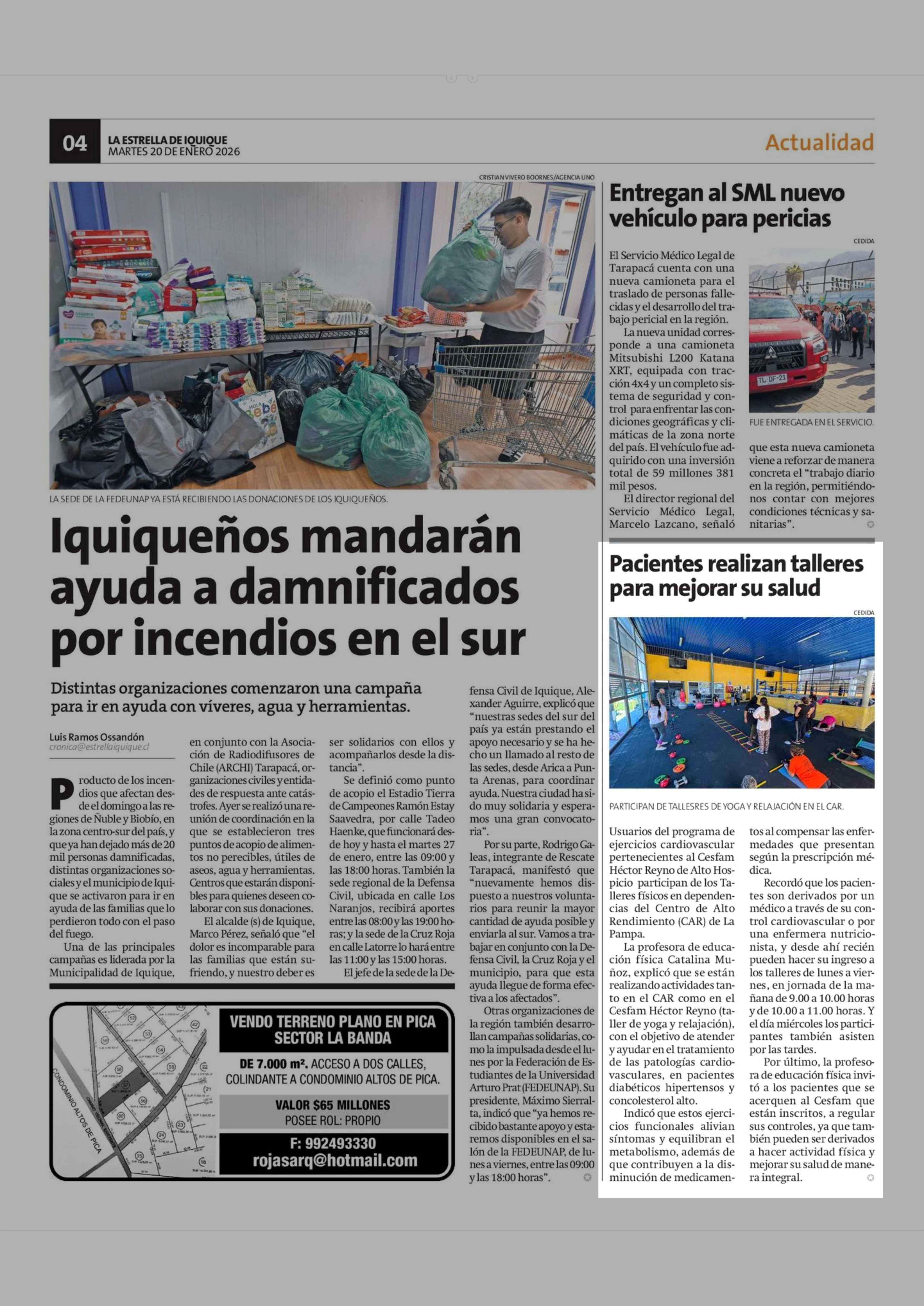 Fecha: 20-01-2026 Sector: Noticia general Región: Región de Tarapacá