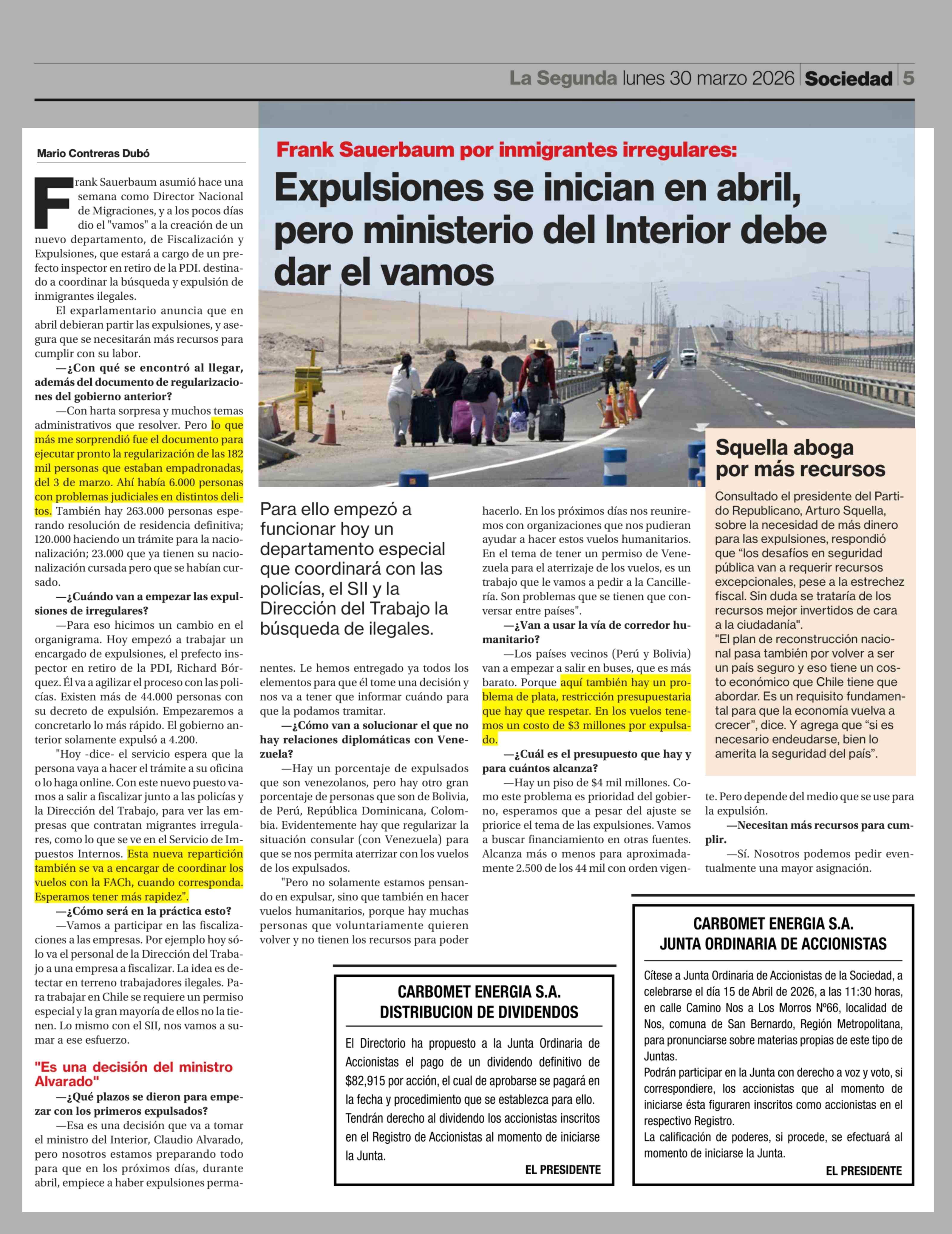 Título: Expulsiones se inician en abril, pero ministerio del Interior debe dar el vamos